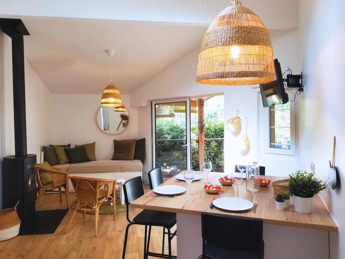 Этот небольшой дом, классифицируемый как⭐️⭐️⭐️ «меблированный турист» в центре красивого района, окруженного соснами, находится в нескольких минутах ходьбы от пляжа Бурденес. Он удобный и хорошо оборудованный. Вы получите дружеские впечатления, особенно благодаря просторной террасе и обеденной зоне. Гости могут насладиться всеми развлечениями Landifornia благодаря близости к красивому полю для гольфа Seignosse, пляжам и городу Хосегор всего несколько минут езды на велосипеде.
