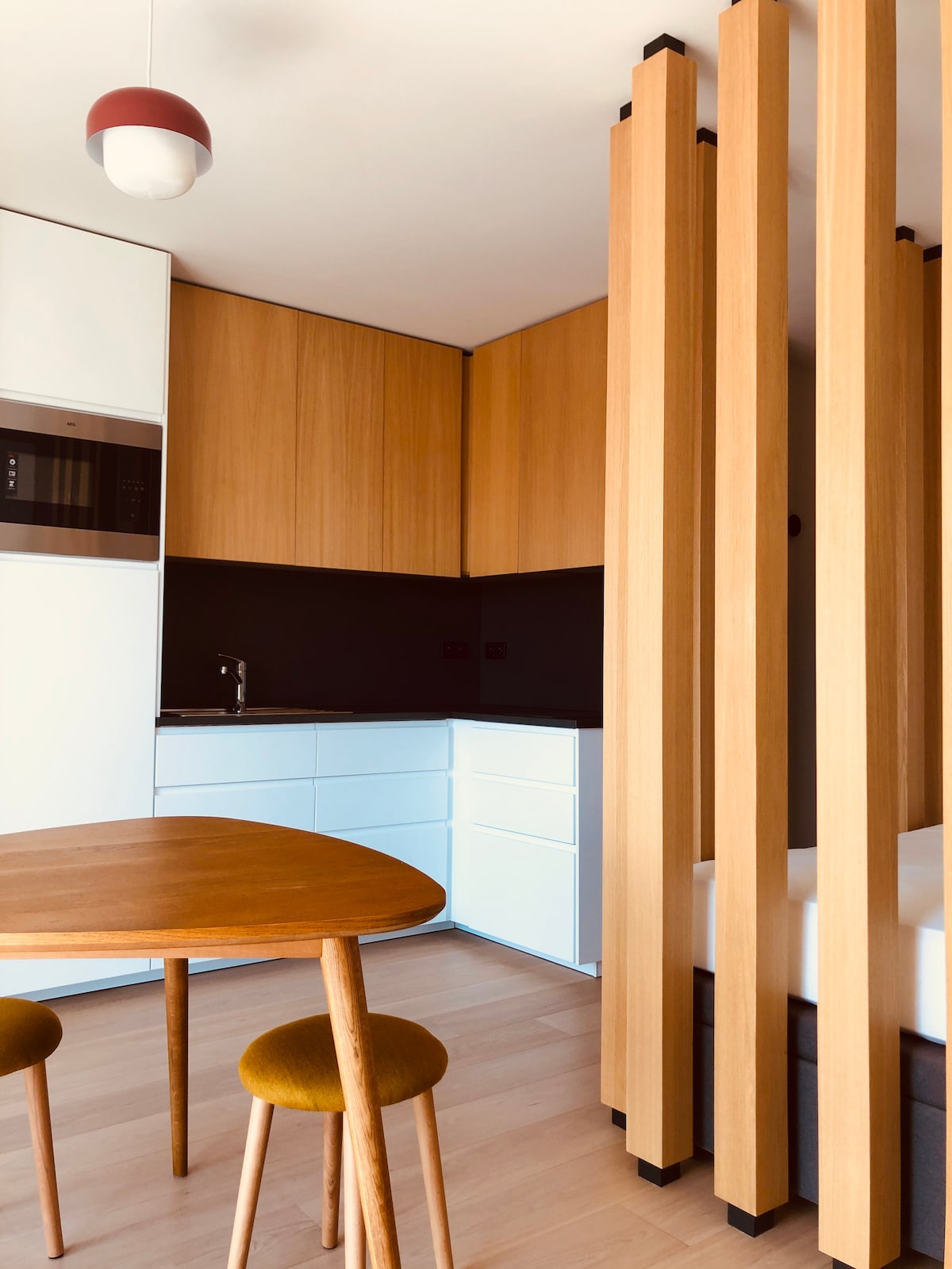 Высокий потолок создает ощущение простора и подчеркивает естественную яркость. Функциональная и эстетичная планировка была разработана для удовлетворения потребностей путешественников, сохраняя при этом теплое очарование. Гостиная оформлена в непринужденной пляжной и серф-атмосфере. Чистота и объем помещения создают дружелюбную и расслабляющую атмосферу. Открытая кухня хорошо оборудована. В продуманной спальной зоне есть удобные постельные принадлежности.