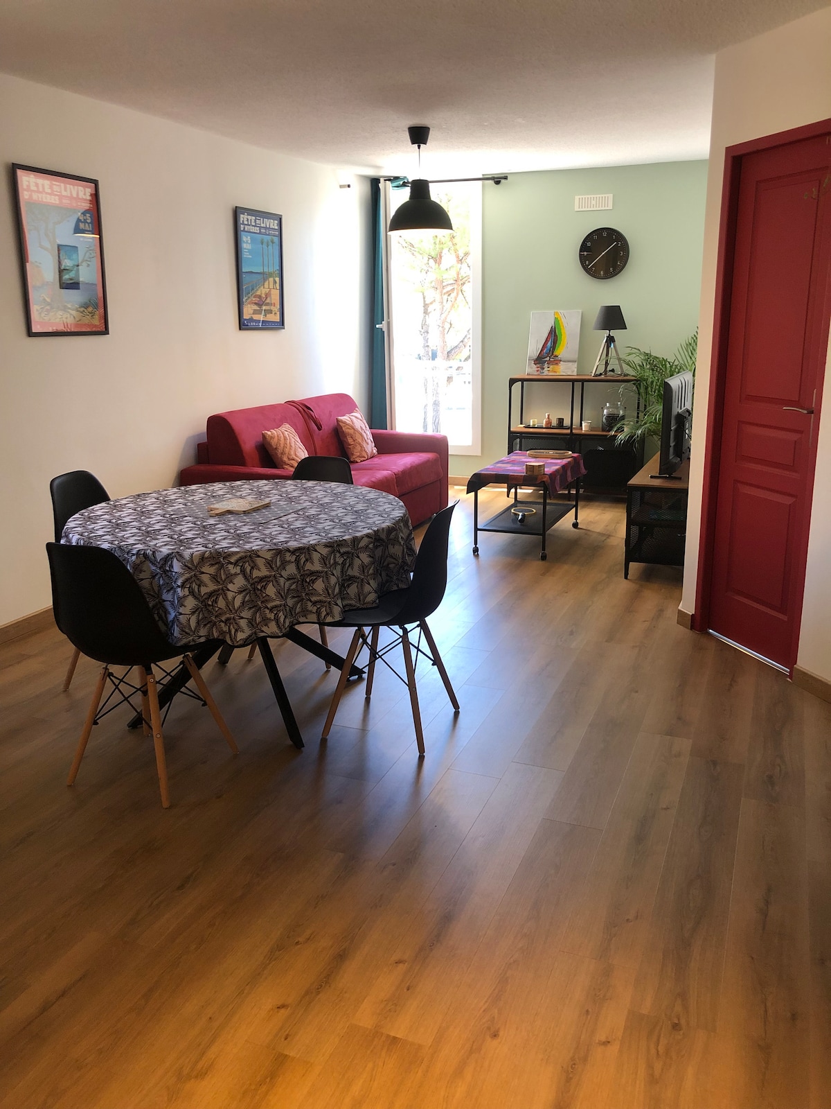 Аренда студии с классификацией 1* для 3 человек, максимум 1 кровать на 140 человек и диван-кровать. Студия расположена в резиденции с закрытой парковкой перед пекарней. Новая нумерация, резиденция находится по адресу 309 chemin du moulin 1er. Для людей, у которых нет средств передвижения, бесплатные шаттлы каждые 1/4 часа доставят вас в центр города или на автобус (автобус 67), чтобы добраться до Гина до пирса на Золотые острова.