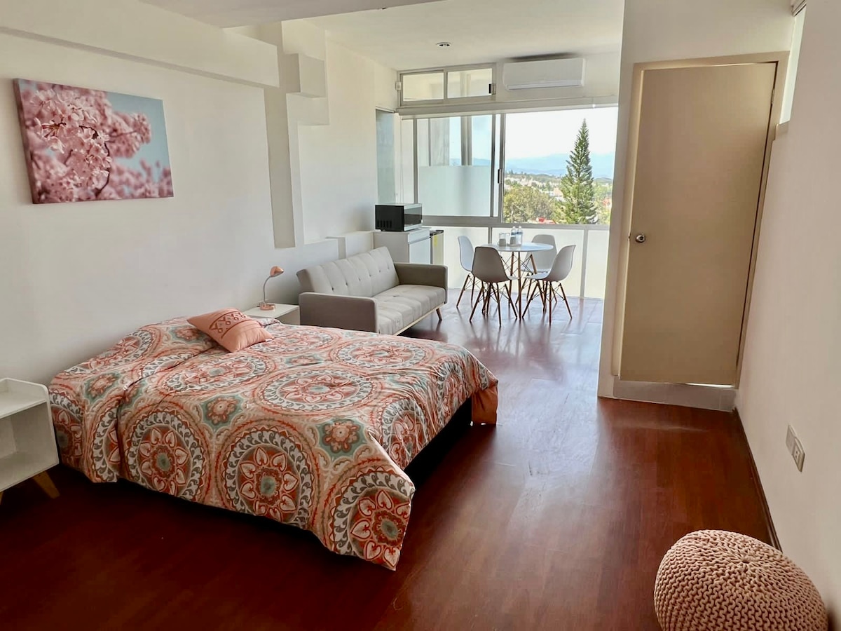 Квартира расположена в Ла-Прадера, к югу от города Халапа Мы находимся по адресу: — 3 минуты от Plaza el Juguete (Chedraui, рестораны, Smart Fit, Padel Club) и Европейского университета. — 10 минут от Plaza Américas, Monte Magno. — 15 минут от центра Халапы. В квартире есть две спальни, диван-кровать, оборудованная кухня, гостиная, столовая и телевизор с Amazon Prime и Megacable в гостиной и спальне. Доступ в квартиру осуществляется с помощью ключа, так что вам не нужно беспокоиться о времени прибытия.
