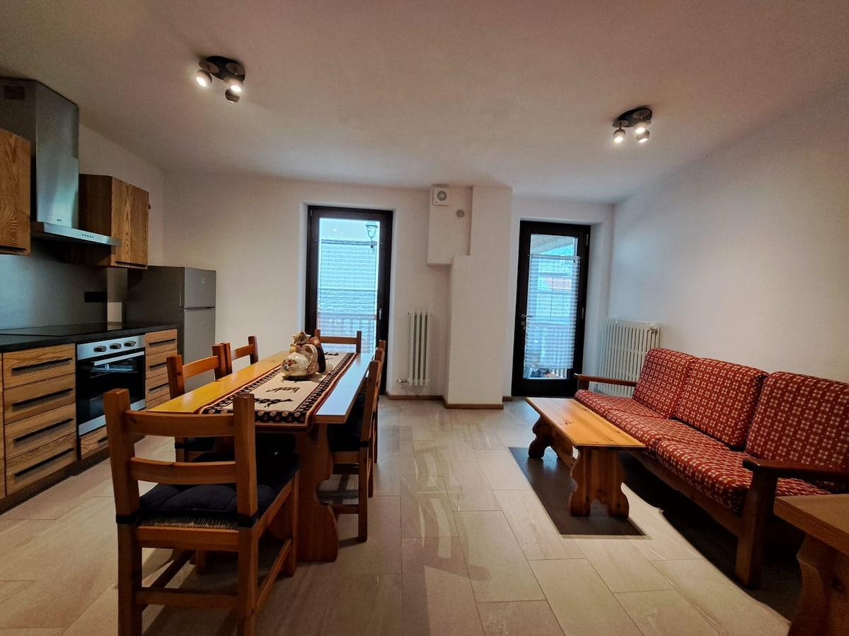 It can accommodate up to six people. Ideal as a stopover for the Tour du Mont Blanc and in general for those who love hiking and mountain sports. Close to the sports center and ski slopes. The center of Courmayeur can be reached in 10 minutes on foot. The Pré Saint Didier spa is a 10-minute drive away. The Skyway is a 5-minute drive away. There is no parking space, but public parking is convenient at the sports center (300 meters). Pets not allowed.