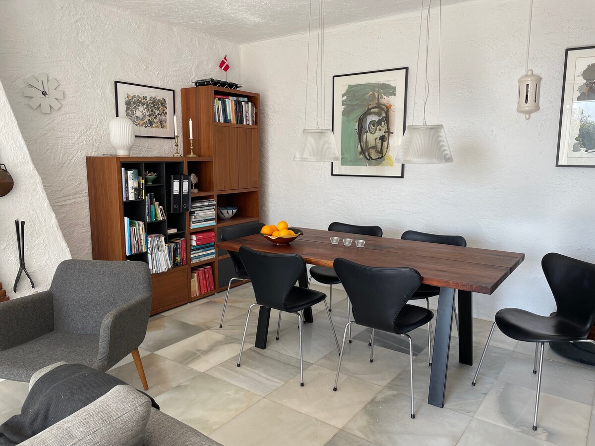 Недавно отремонтированный таунхаус с лучшим расположением прямо на пляже с прекрасным видом на Средиземное море. Идеально подходит для прекрасных набережных и ванн в море. В доме есть частное джакузи на патио с видом на море, которое идеально подходит для наслаждения летним вечером или разогрева в холодные зимние дни. В районе есть общий бассейн примерно в 30 секундах от входа. Дом площадью 85 кв. м имеет 2 спальни, 2 ванные комнаты ,гостиную и кухню. В районе есть бесплатная парковка. Есть Wi-Fi и кондиционер.