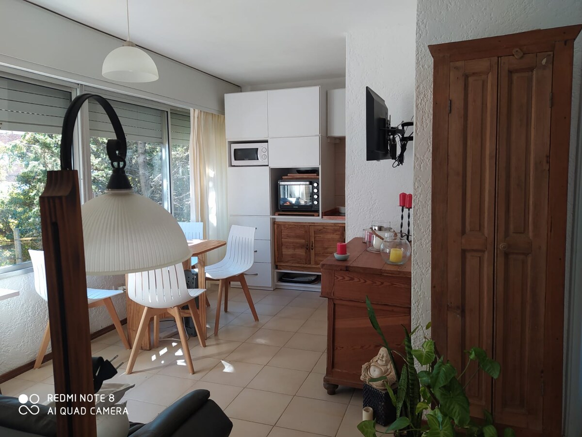Расслабьтесь в этом тихом и элегантном месте. Насладитесь уникальным видом на Пунта-дель-Эсте. В распоряжении гостей (открытая) спальня, ванная комната, оборудованная кухня, кондиционер, Wi-Fi, телевизор Smart TV и т. д. 2-местное основание для кровати и 2 односпальных матраса. Лучшие услуги, включая крытый и открытый бассейн, барбекю, гараж, микро-кинотеатр, тренажерный зал, игры на улице для детей, комнаты (для детей, подростков и взрослых). Спросите меня.