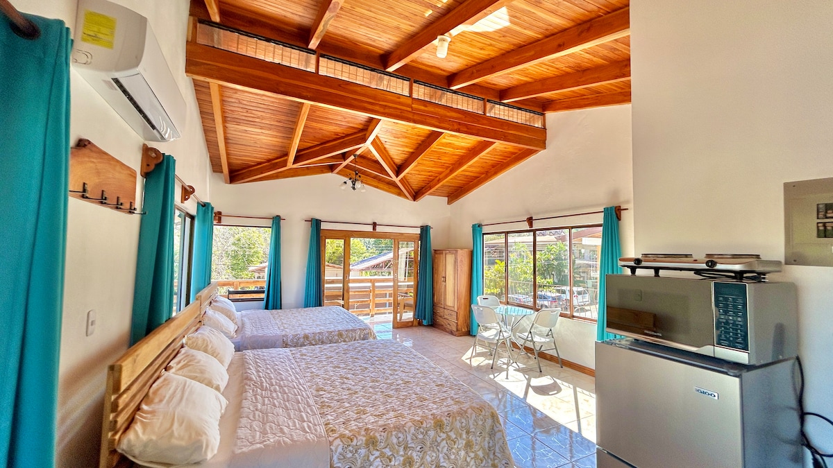 С этого расположения на вершине холма над заливом Тамариндо открывается невероятный панорамный вид. Вы поймете, что мы имеем в виду, когда приедете! В Casita есть двуспальная кровать размера King size и раскладная кровать размера Queen size, полностью оборудованная собственная ванная комната, кухня и небольшой балкон с видом на океан и идеально подходит для наблюдения за обезьянами на окружающих деревьях! У вас также будет доступ к социальному пространству жилья, включая ветреную крытую террасу у бассейна с видом на океан и лаундж на крыше!