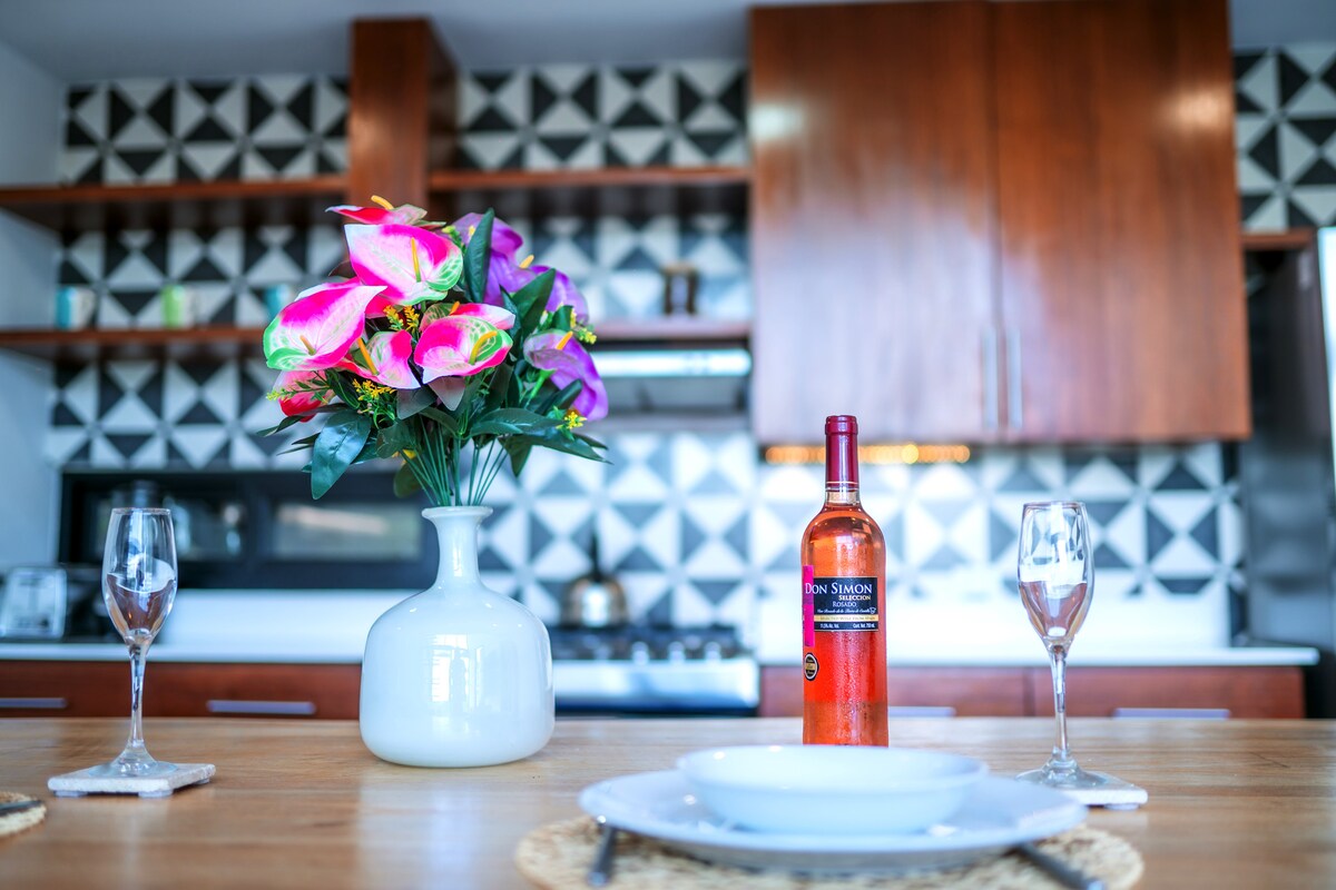 Из нашего дома открывается великолепный вид на океан. Вы можете насладиться идеальным закатом с нашего большого балкона на втором этаже. Приезжайте в отпуск и уезжайте с новым чувством приключений. Наш дом — это экологичный дом с 2 спальнями и 2 ванными комнатами, который не уступает современной роскоши. Этот райский уголок на солнечной энергии находится в двух минутах ходьбы от знаменитого пляжа Асучильо и в одной минуте ходьбы от общественного бассейна, лаунджа и нового мексиканского ресторана в лаундже у бассейна. Транспорт до аэропорта