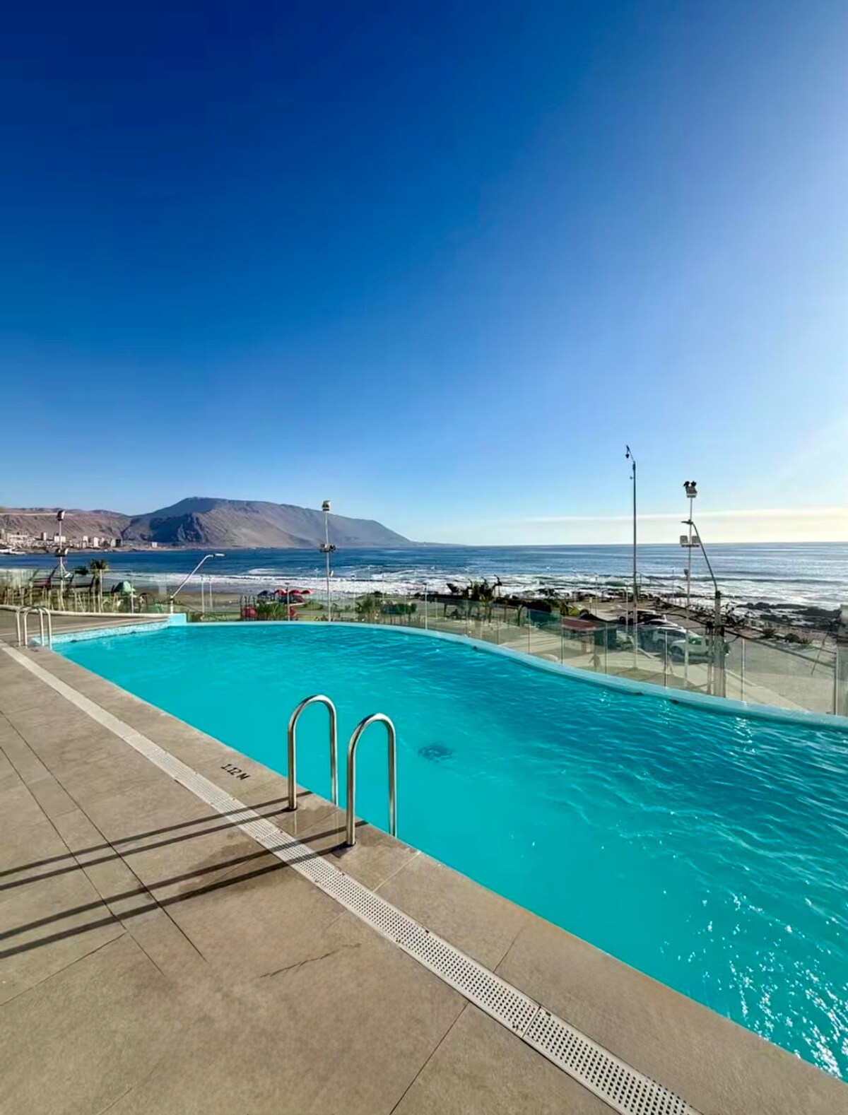 Despierta con una vista maravillosa al OcΓ©ano PacΓfico. Este departamento en la penΓnsula de Iquique tiene vista directa a playa Cavancha desde la terraza, a pasos de la mejor gastronomΓa, pubs y Casino Dreams. Perfecto para una escapada en pareja o una estadΓa de trabajo sin complicaciones.