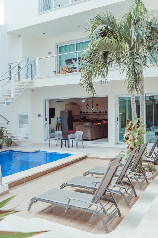 Sundreamers расположен всего в одном квартале от Northbeach, менее чем за 2 минуты у вас есть пальцы на белом песке, плавать в бирюзовой воде или смотреть удивительный восход или закат солнца. Все, что вам нужно, чтобы насладиться пребыванием прямо здесь, в вашей квартире-студии, красочно оформленной мексиканскими художественными ремеслами, удобными негабаритными кроватями, балконом, кондиционером, WI-FI, сейфом, собственной ванной комнатой, шкафом, комедором, мини-кухней с холодильником, горячей плитой, тостером и кофеваркой, чтобы насладиться пребыванием и отдохнуть в вашей квартире.