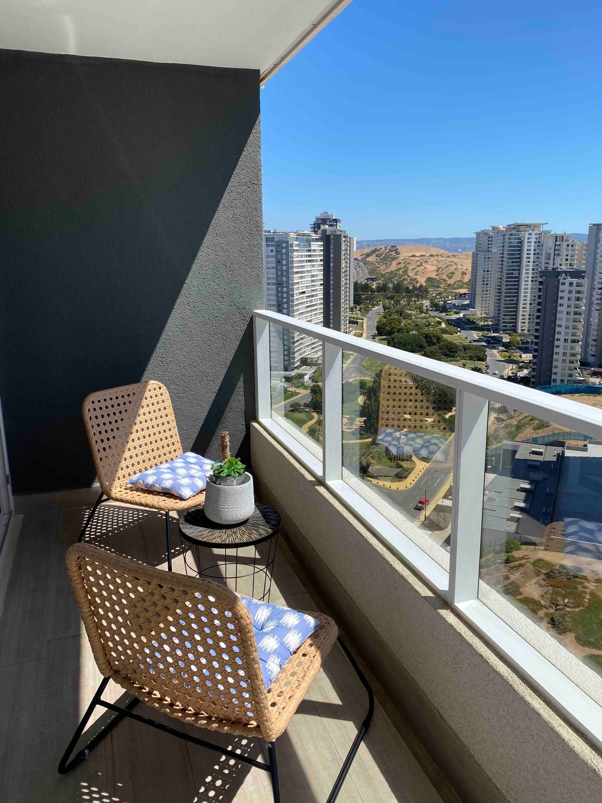 Welcome to "Oasis Costero" A new, fully equipped apartment on the waterfront with an ocean view in Concón. - Outdoor pool available between November and March. - Private parking. - Spacious terrace with ocean view equipped with an electric grill. - Includes bed linens and towels. - WiFi, and a Smart TV. - Fully equipped kitchen. - Safe and quiet area. - Just steps away from Beaches, Restaurants and Bike Paths.