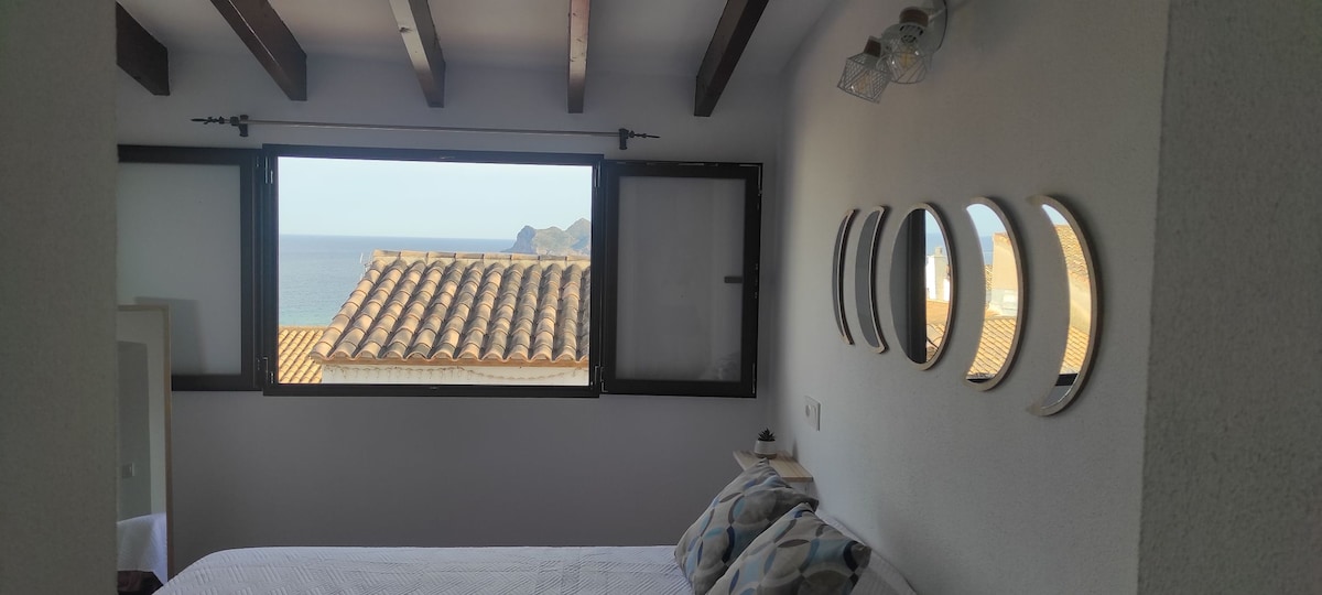A 5 minutos de la playa y la plaza de la iglesia. Terraza con vistas al mar, dormitorio doble con aire acondicionado, dormitorio individual, baño y cocina equipada. Parking público a 1 minuto. Ideal para disfrutar del mar y el centro. 5 min from the beach and church square. Terrace with sea views, double bedroom with AC, single bedroom, bathroom, and equipped kitchen. Public parking 1 min away. Perfect for enjoying the sea and town center.