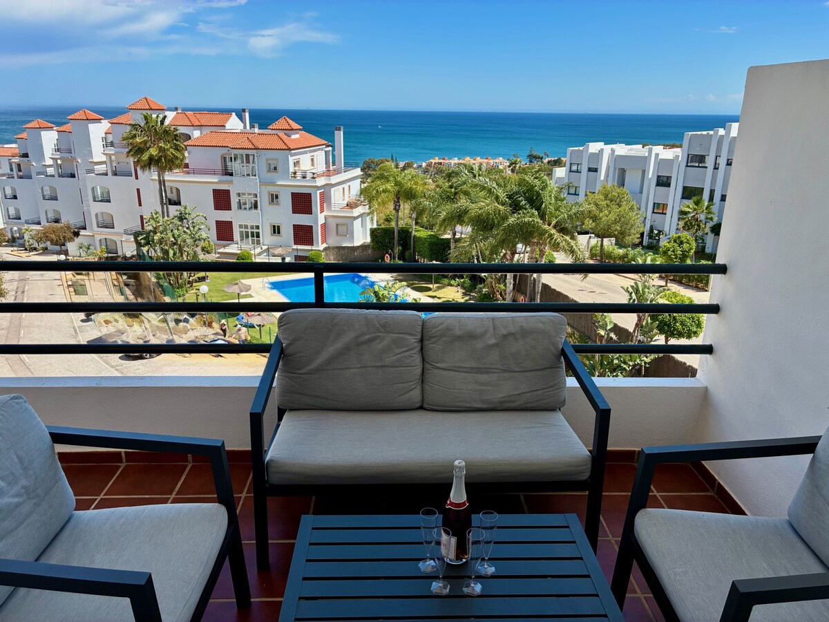 Fantastic penthouse just an hour from Malaga airport. The sea view is absolutely magical, and on clear days, you can even see all the way to Africa. This accommodation is something truly extraordinary and must be experienced. The entire apartment has been newly renovated and is exclusively furnished. It features two bedrooms, two bathrooms, and a living room with a 55” TV. The terrace, approximately 30 sqm, faces south. Rooftop terrace of over 70 sqm, fully furnished. A warm welcome awaits!
