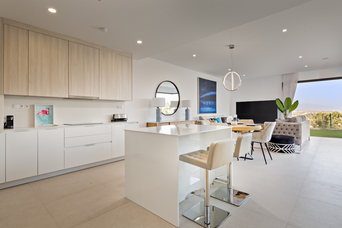 Наша новая квартира HIGHend находится всего в 8 минутах от центра Марбельи. Из окон открывается вид на море, что создает спокойную обстановку для вашего испанского отдыха. Квартира имеет скандинавскую элегантность с чистыми линиями, нейтральными тонами и минималистичным дизайном, что создает яркую и утонченную атмосферу для незабываемого отдыха. Наши гости могут бесплатно пользоваться спа-салоном с бассейном с подогревом, сауной и тренажерным залом - все это бесплатно с фантастическим видом на море. Тренажерный зал хорошо оборудован с автоматами для верхней линии, а клуб добавляет социальную составляющую к проживанию.