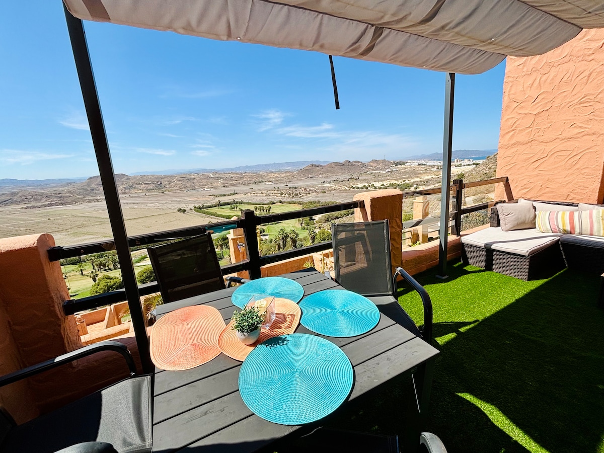 Квартира расположена прямо перед пляжем. К услугам гостей открытый бассейн, открытый в сезон с 15 июня по 15 сентября, и сад. Из окон открывается прямой вид на океан, а с отдельной террасы можно насладиться Средиземным морем. Благодаря отличному расположению гости могут насладиться широким выбором ресторанов, зон отдыха и шопинга в нескольких минутах ходьбы. Расстояние до Вера составляет 13 км, до Сан-Хосе — 49 км, а до аэропорта Альмерии — 58 км.