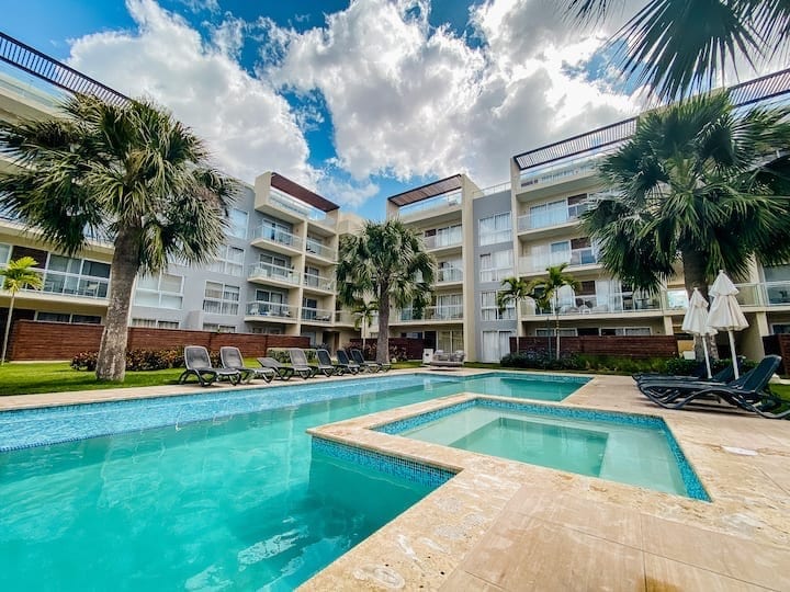 Добро пожаловать в нашу эксклюзивную квартиру в Доминиканской Республике, всего в 5-6 минутах от сказочного пляжа. Жилье расположено в тихом районе, в окружении бассейнов и пышной растительности. Интерьеры, оформленные в элегантности и стиле, обеспечивают незабываемый отдых. С нетерпением ждем вас, чтобы вы могли насладиться уникальными моментами отдыха в нашем очаровательном месте!
