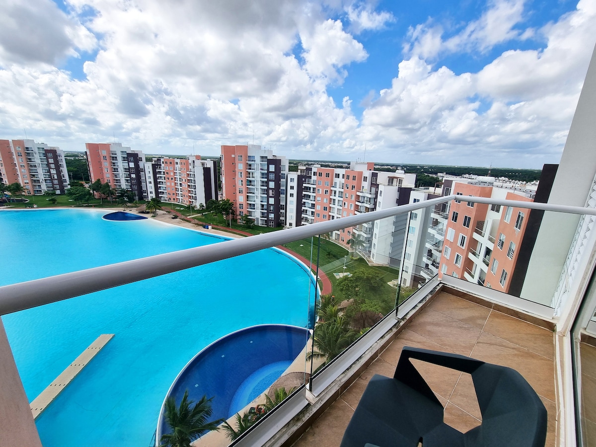 Красивая квартира с видом на лагуну, клубы, прямо на лучшем пляже с белым песком на курорте Ocean Dream. Красивый панорамный бассейн с видом на пляж. До лучших ночных клубов и ресторанов можно дойти пешком. В кондоминиуме есть кухня, ванная комната и гостиная с двуспальной кроватью размера Queen size и диваном с эффектом памяти, который раскладывается в двуспальную кровать. Балкон с зоной отдыха. На кухне есть микроволновая печь, две конфорки, тостер и холодильник.
