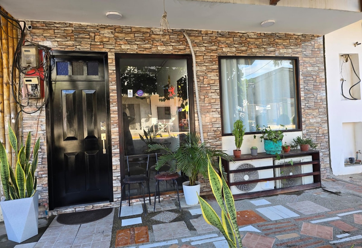 Escapada Romántica ¡Hola! Te presento nuestro Rincón Romántico, el santuario perfecto para dos personas. Diseñado para la intimidad y el descanso, nuestra habitación ofrece: Cama matrimonial queen . Baño privado en suite y moderno. Equipped kitchen y nevera para preparar tu desayuno en la intimidad. La ubicación: A solo dos cuadras de la playa para paseos al atardecer y junto a la policía comunitaria, garantizando seguridad y paz mental. ¡Reserva ya!