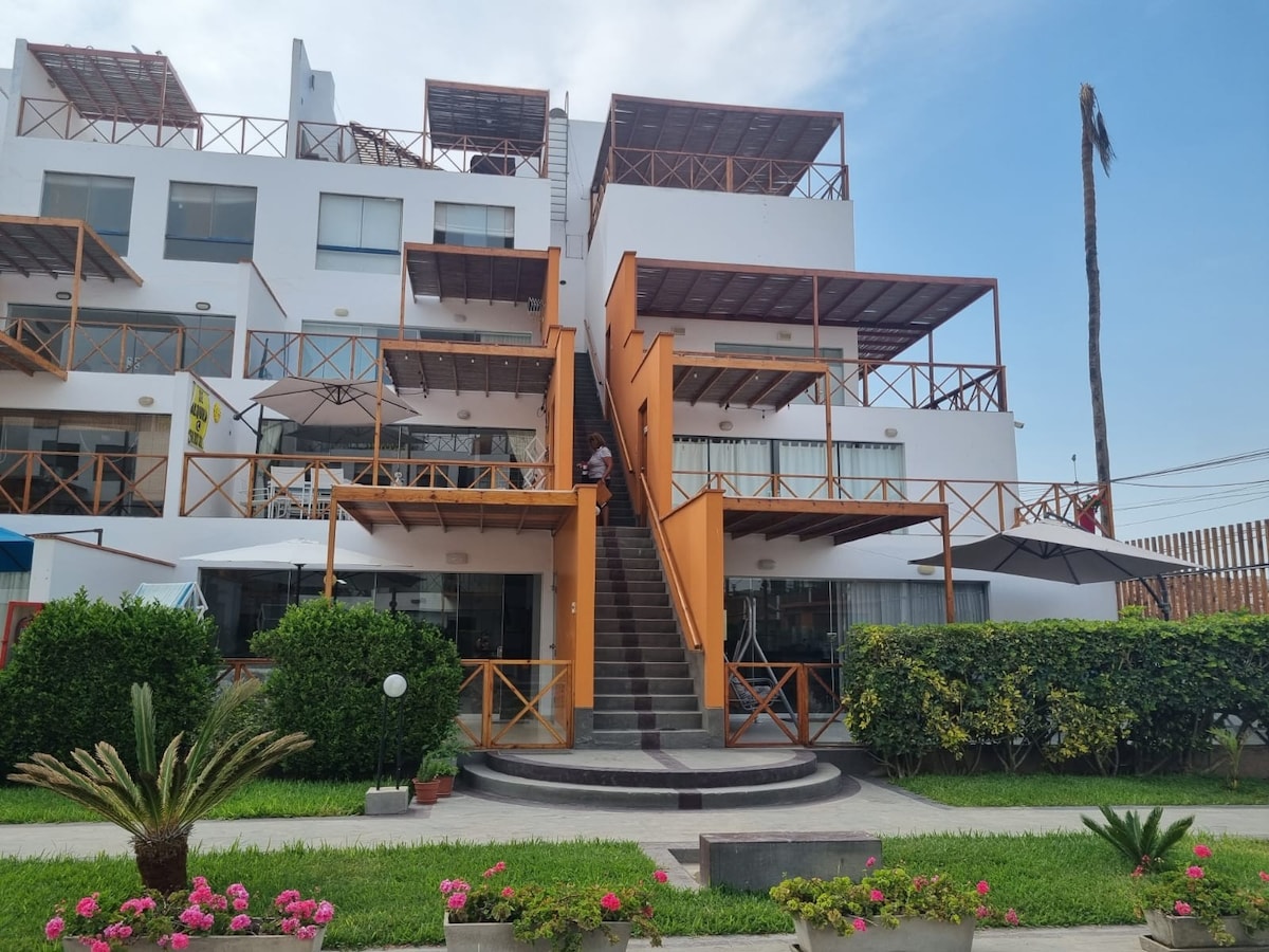Прекрасная квартира в премиальном месте. В одном шаге от берега. В 15 минутах от современного бульвара Азии. 10 минут до деревни Серро Азул. Вы сможете увидеть незабываемые закаты на побережье Тихого океана. Иногда можно увидеть и перуанских дельфинов! Пуэрто-Фьель - тихий, семейный и чистый пляж. Из апартаментов открывается панорамный вид на море и остров.