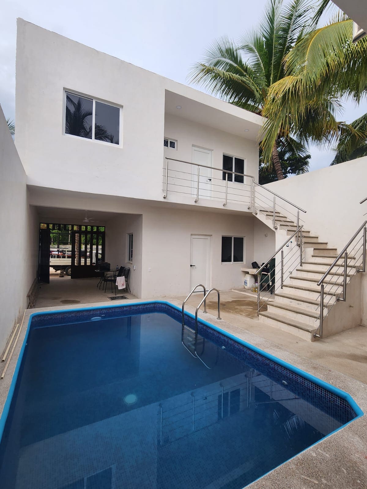 Amplia y cómoda, wifi, recamara 1: a/c, 1 cama QS, 1 mat., 1 ind., colchón, baño, closet-vestidor; recámara 2: a/c, 1 cama KS, 1 ind. y closet; recámara 3: a/c, 3 camas ind., roku tv; en la sala 2 sofas, love seat, cama ind., y roku tv, comedor grande; cocina equipada; patio de servicio, 3 baños, asador, tarja; terraza, hamacas y mobiliario, cochera para 6 coches, 700 m2 de área con plantas, ventiladores de techo, a 7 cuadras de playa, se aceptan mascotas (no sobre muebles).