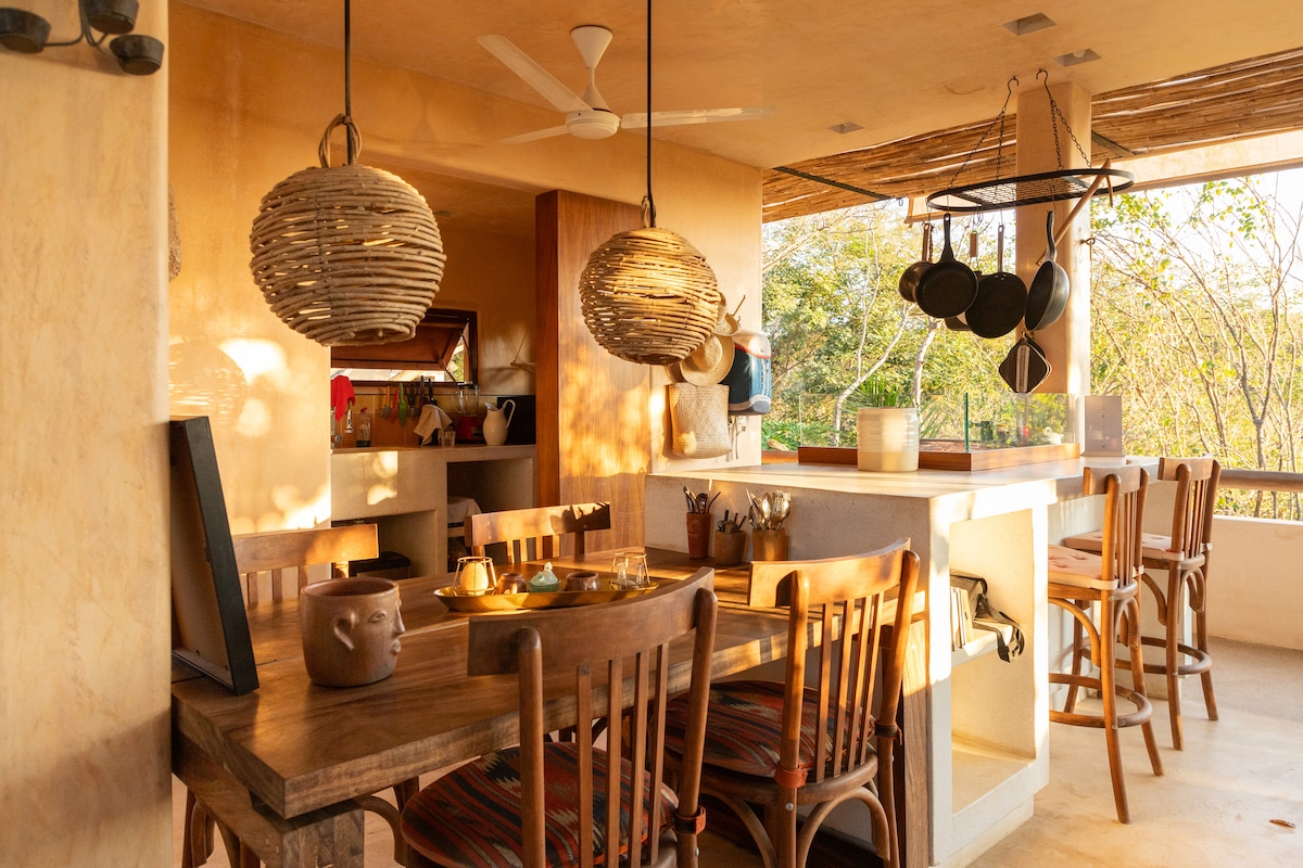 Welcome to our hidden gem! Your stay includes a a daily breakfast, all set against stunning ocean and mountain views. For an extra touch, opt for our Cacao Ceremony, yoga class with Laura (@lauraortegayogaa) or massage packages. Unwind in inviting natural spaces, a fully equipped kitchen, and a private biopool, with daily housekeeping and high-speed WiFi. Follow us on Insta @casadelatierramx. Get ready to disconnect from the hectic pace of everyday life in your Bamboo House!