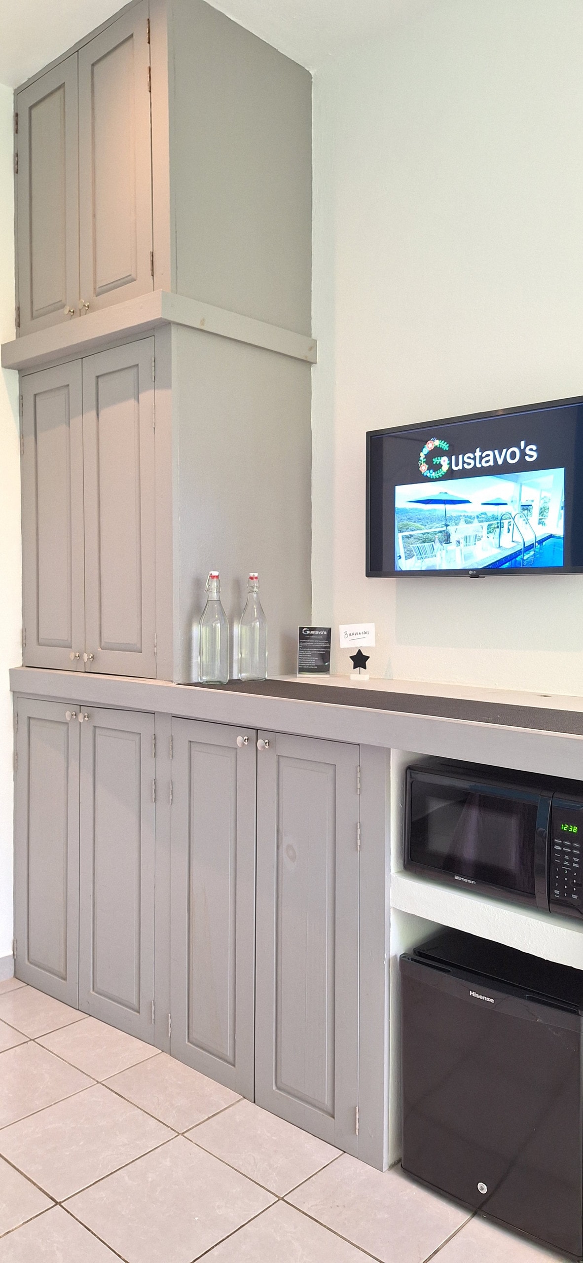 Уютный пентхаус с 1 спальней и видом на верхушки пальм, современная квартира открытой планировки с большой спальней с кондиционером, двуспальной кроватью размера King size с первоклассным матрасом и постельным бельем, полностью оборудованной кухней, собственной ванной комнатой, душем с горячей водой, Интернетом Starlink и огромной собственной террасой. Менее 2 минут ходьбы до пляжа, расположенного на тихой стороне города. Однако, как и в большинстве мест здесь, у наших соседей есть много петухов и собак, которые способствуют атмосфере.