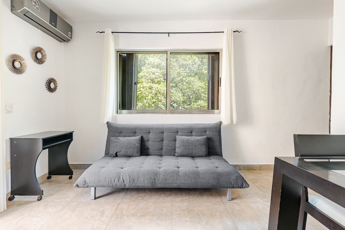 В нескольких шагах от моря и знаменитой 5-й авеню, в безопасном районе, эта фантастическая квартира идеально подходит для тех, кто любит хороший образ жизни. Собственная терраса с джакузи с видом на тропический сад, бесплатный WI-FI и частная парковка. В Aluxeshome есть большая комната для отдыха с диваном-кроватью, спальня, 2 ванные комнаты и кухня. Лифт и охрана. Рядом с лучшими пляжными клубами, ресторанами, кафе, магазинами, искусством и музыкой местных жителей. До него легко добраться на автобусе, такси или машине ADO.