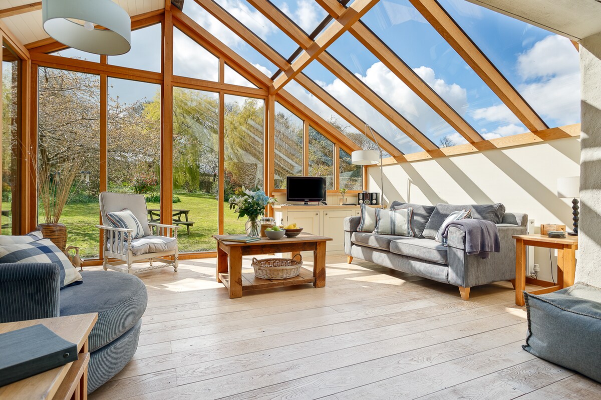Безупречно оформленное жилье в колониальном стиле с дровяной печью, гидромассажной ванной и террасой. Отличное место для пар, 2 пар или семей (гибкая конфигурация кроватей в 2 спальнях с ванными комнатами (2 с двуспальными кроватями размера King size или 1 с кроватью размера King size + 2 односпальные кровати). Идиллическое и спокойное загородное место, но удобно расположенное для пляжей, ручьев, Университета Фалмута, прогулок по сельской местности, объектов National Trust и отличных мест, где можно поесть и выпить. Идеальное место, чтобы сбежать, расслабиться и насладиться Корнуоллом!