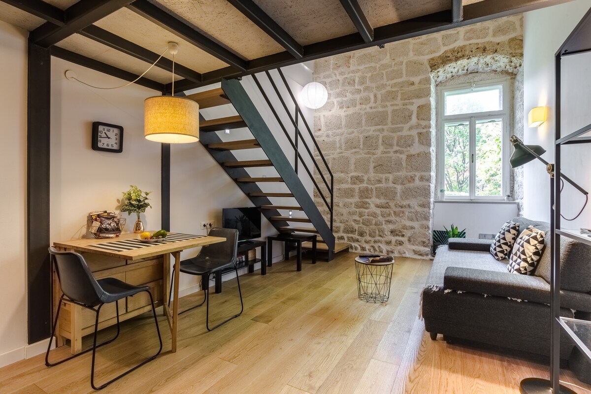 Удобный и современный лофт в идеальном месте, всего в нескольких шагах от городских стен и ворот Плоче, с потрясающим видом на Старый город, море и остров Локрум. В вашем распоряжении 2 спальни с двуспальными кроватями, ванная, туалет, полностью оборудованная кухня, офисная и благородная столовая и гостиная с террасой с видом на волшебные крыши и Старый порт Дубровника. Расположенные чуть выше Старого города в районе Плоче, все основные достопримечательности и пляжи находятся в пешей доступности.