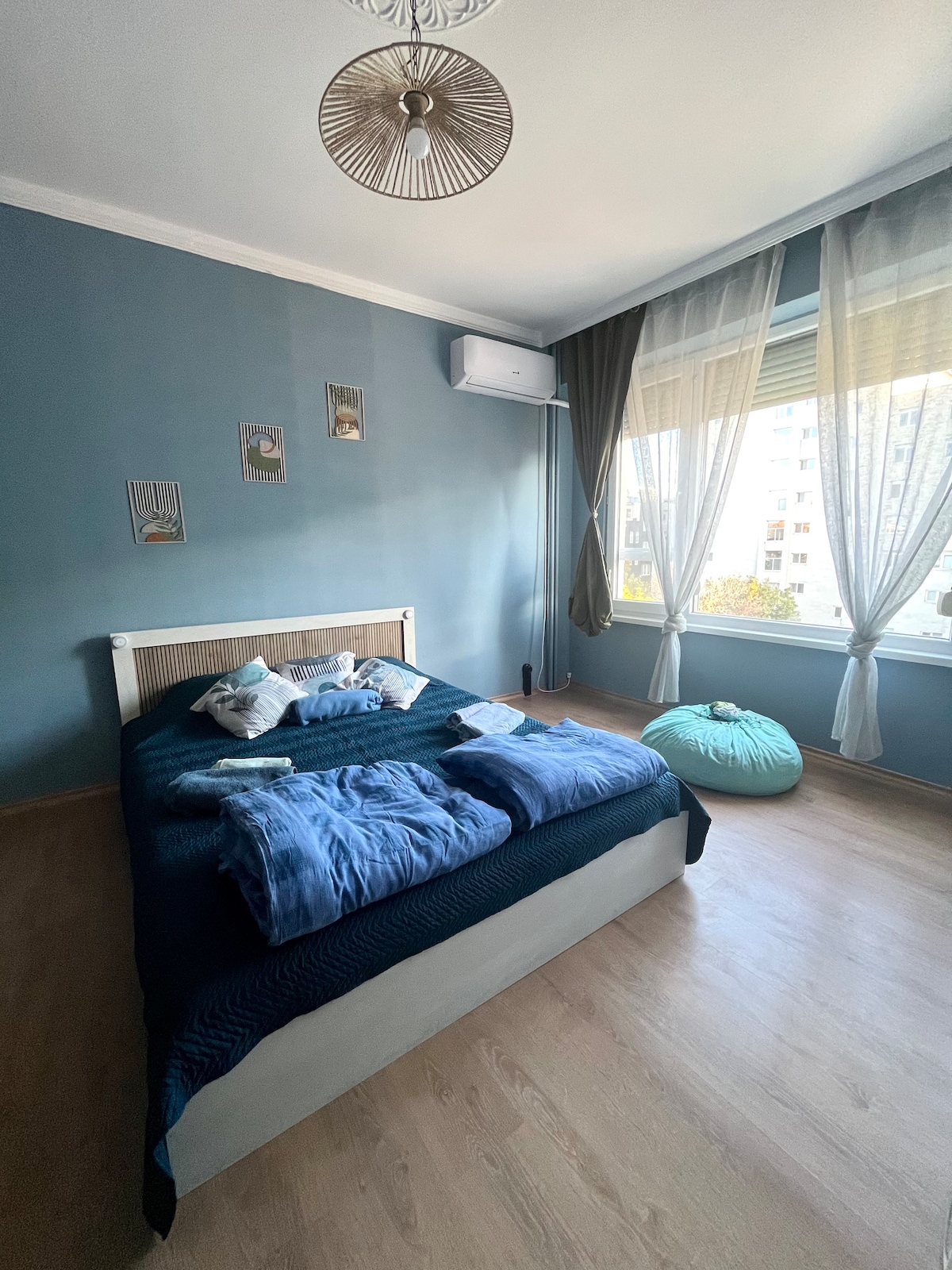 Просторные апартаменты с тремя террасами, двумя спальнями, большой гостиной, большим диваном-кроватью, с видом на реку Марица.Очень близко к центру города и в 2 минутах ходьбы от Международной ярмарки Пловдива. Рядом находится сеть ресторанов и магазинов.
