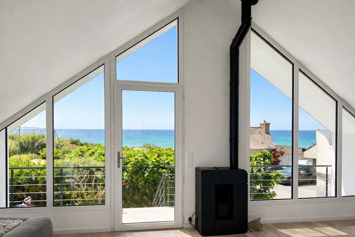 Положите сумки, откройте жалюзи: океан прямо перед вами, он просыпается и будет вас сопровождать весь день. Здесь есть все, чтобы ваше пребывание было приятным, комфортным и расслабляющим. Этот недавно построенный дом, экологически ориентированный и залитый светом, предлагает красивые объемы, дружелюбные общие пространства. Если вы с семьей или друзьями, это место для вас. Усиленная изоляция, натуральные материалы и большие окна от пола до потолка обеспечивают комфорт в любое время года.