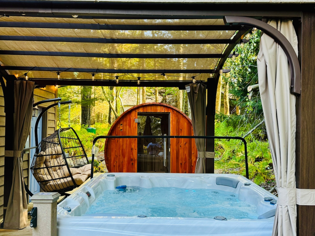 ❄️ У ворот горнолыжного курорта Jack Frost ❄️ 🎱 Бильярдный стол 🍽️ Обеденный стол на 16 мест 🥅 Аэрохоккей 🔥 Дровяной камин 🏓 Пинг-понг 🥩 Газовый гриль Weber ⚽️ Настольный футбол 🏡 Площадь 3000 кв. футов 🚴♂️ Велотренажер 🪵 Костровая яма на заднем дворе ★ 6-местная ароматическая кедровая бочка-сауна ★ Отдельная столовая и гостиная. ★ Прихожая для вашего снаряжения для гольфа и лыж ★ Солнечная терраса с видом на лес ★ Уединенный участок площадью 2 акра. ★ 4 спальни + спальный лофт