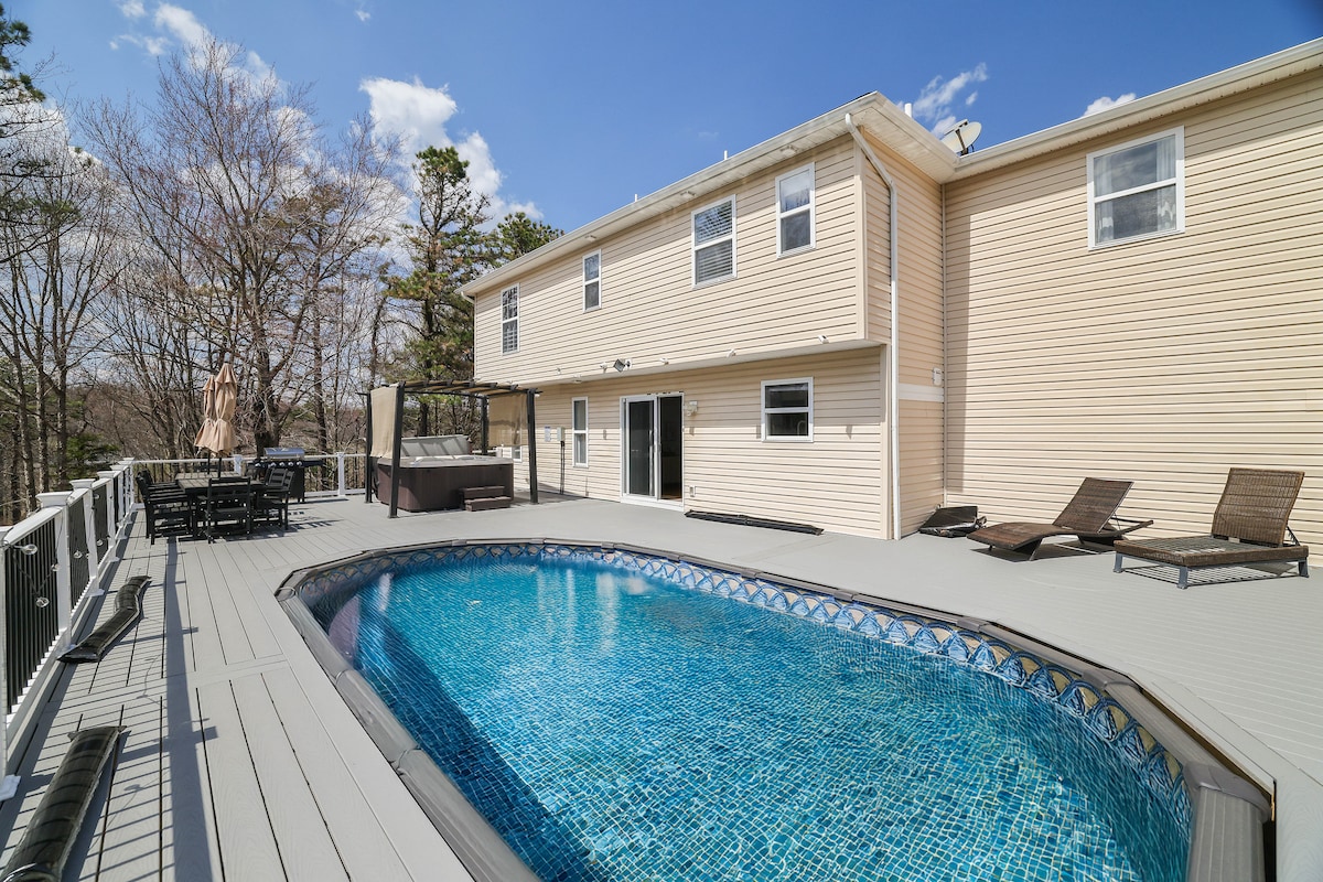 Создайте вечные воспоминания в нашем уютном современном доме, в котором есть бассейн, игровая комната, сауна, кинотеатр с объемным звуком, джакузи, каменная костровая яма с гамаками и гирляндами на солнечных батареях, баскетбольное кольцо и уличный гриль. Насладитесь отдыхом и развлечениями — забронируйте незабываемые моменты! 13 минут до казино Mount Airy 9 минут до Калахари 12 минут до горы Камелбэк 10 минут до Great Wolf Lodge. 15 минут до парка штата Биг-Поконо Регистрационный номер в тауншипе -020424 Минимальный возраст для аренды: 25