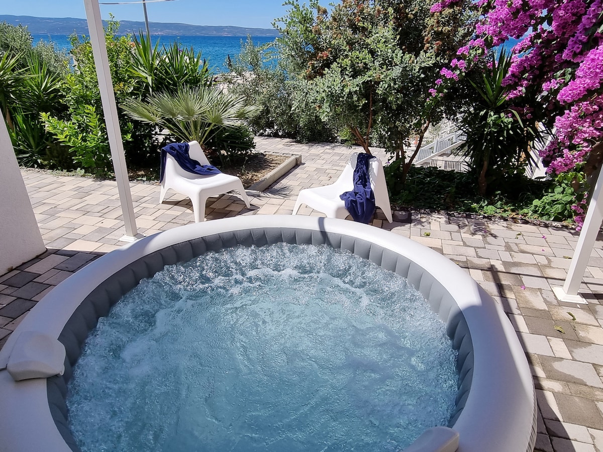 Private rooftop terrace with jacuzzi and stunning sea views over the Adriatic. Cozy top-floor apartment ideal for couples looking for a peaceful and relaxing stay near Split. Enjoy sunsets, complete privacy, and a quiet location just 15 minutes from the city. Beach, restaurants, and shops within walking distance.