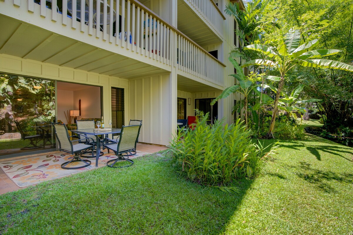 Ground Floor opens into nature, your feet in the grass, smell the flowers. Kiahuna Plantation is an ocean front resort with rolling green landscaping, fragrant flowers, Mango trees, Koi ponds, and access to a high end health club. Grilling stations, laundry, pool w/slide, spa, fine restaurants and a coffee shop. Snorkeling, nightly turtles on shore right around the corner. I live on island, I’m available for any reason. Feel free to ask me questions you have, I’ll respond quickly. Building 16