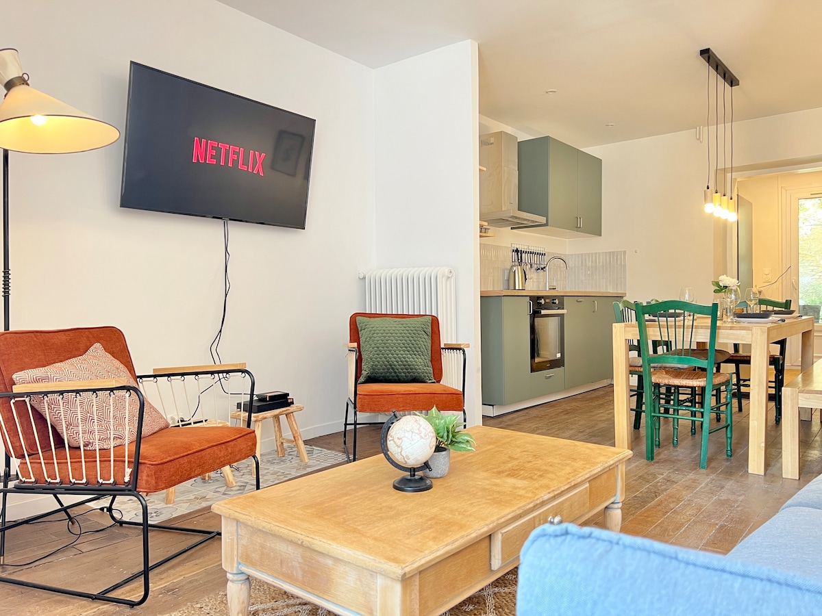 Эта квартира для 2 человек расположена в 5 минутах от центра Пуатье и в тихом районе, идеально подходит для спокойного отдыха. Гостиная с телевизором и Netflix, стол с подъемной столешницей, оборудованная кухня, ванная комната с душем. Частный сад без соседей, элегантная садовая мебель и джакузи с подогревом и душем на открытом воздухе — главные преимущества этой очаровательной квартиры. Идеально подходит для пар или дружеских компаний, чтобы открыть для себя регион Пуатье.
