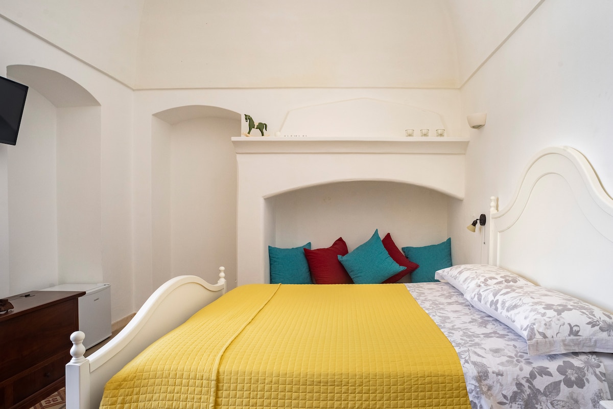 Внутри отеля в Sassi di Matera этот номер в пещере выходит с общей террасы через большую оконную дверь. Это альков, полностью вырезанный в туфе. Абсолютно гостеприимный даже для формы, карьера и округления почти как матушка матери. Ванная комната, хотя и небольшая, укомплектована биде и душем. К услугам гостей кондиционер, телевизор, мини-бар и бесплатный Wi-Fi. Богатый и особый завтрак «шведский стол» включен в стоимость пещеры.