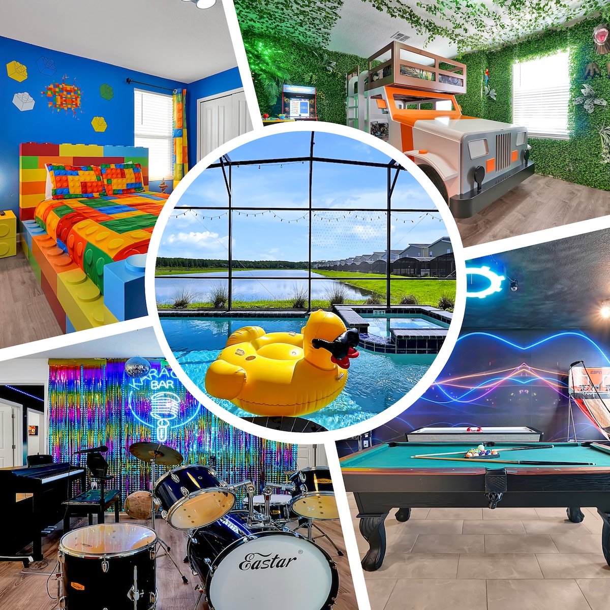 Идеальный баланс СТИЛЬНОГО ДИЗАЙНА, РОСКОШНОГО КОМФОРТА и БЕСКОНЕЧНЫХ РАЗВЛЕЧЕНИЙ, красиво расположенный с потрясающим видом на просторный курорт Reunion Resort площадью 3,5 квадратных мили. У вас будет собственный бассейн, спа-салон, кинозал STAR WARS с пинболом, классические аркадные игры и караоке, детская комната MARVEL с горкой и двумя двухъярусными кроватями, последняя Xbox Series S, просторная площадка для бассейна площадью 2000 футов2 фута, костровая чаша и даже шкаф для ГАРРИ ПОТТЕРА, спрятанный под лестницей, в нескольких минутах от Диснея.
