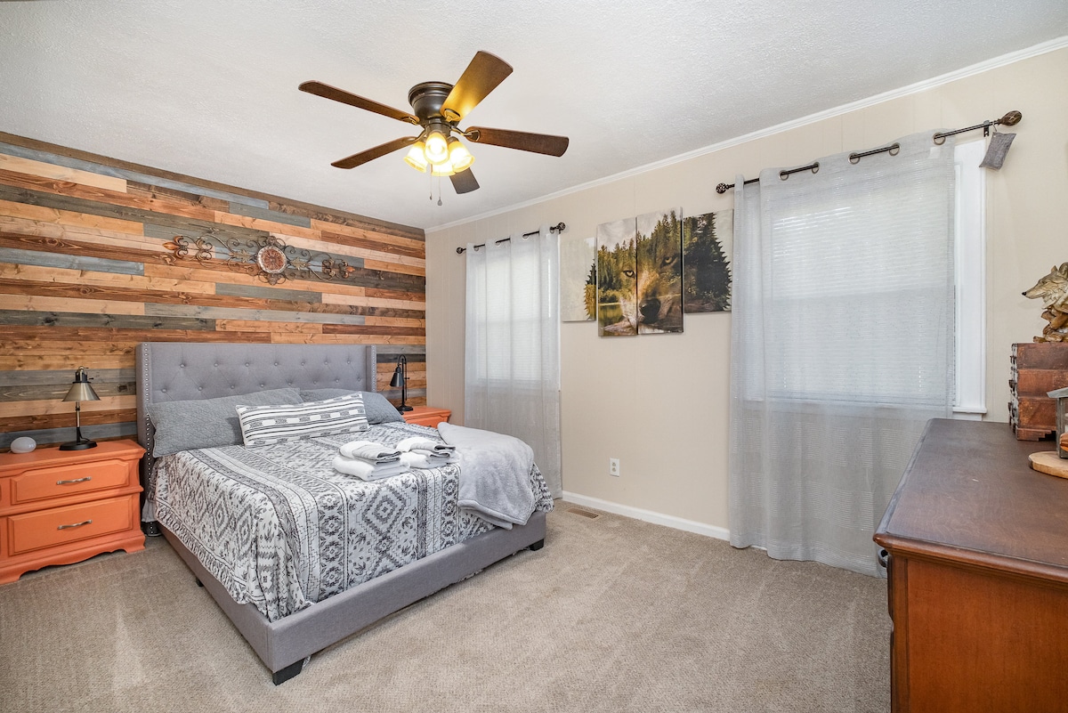 Отлично подходит для тех, кто помогает бороться с коронавирусом, а также для родителей спортсменов и спортсменов Университета. Этот недавно отремонтированный люкс с 1 спальней (двуспальной кроватью размера Queen size) и 1 спальней с отдельным входом без ключа расположен в тихом и безопасном районе. 1/2 мили от десятков ресторанов и магазинов (Target, Walmart, Chick-fil-A и т. д.). На кухне есть кофейная/чайная станция Keurig и стиральная машина с сушкой. В LR есть телевизор и кабельное телевидение ROKU, бесплатный WI-FI. Легко добраться до 74 объездной дороги, всего в 20 минутах езды от центра Шарлотты и в 25 минутах езды от аэропорта Чикаго. Действительно, это ваш дом вдали от дома!