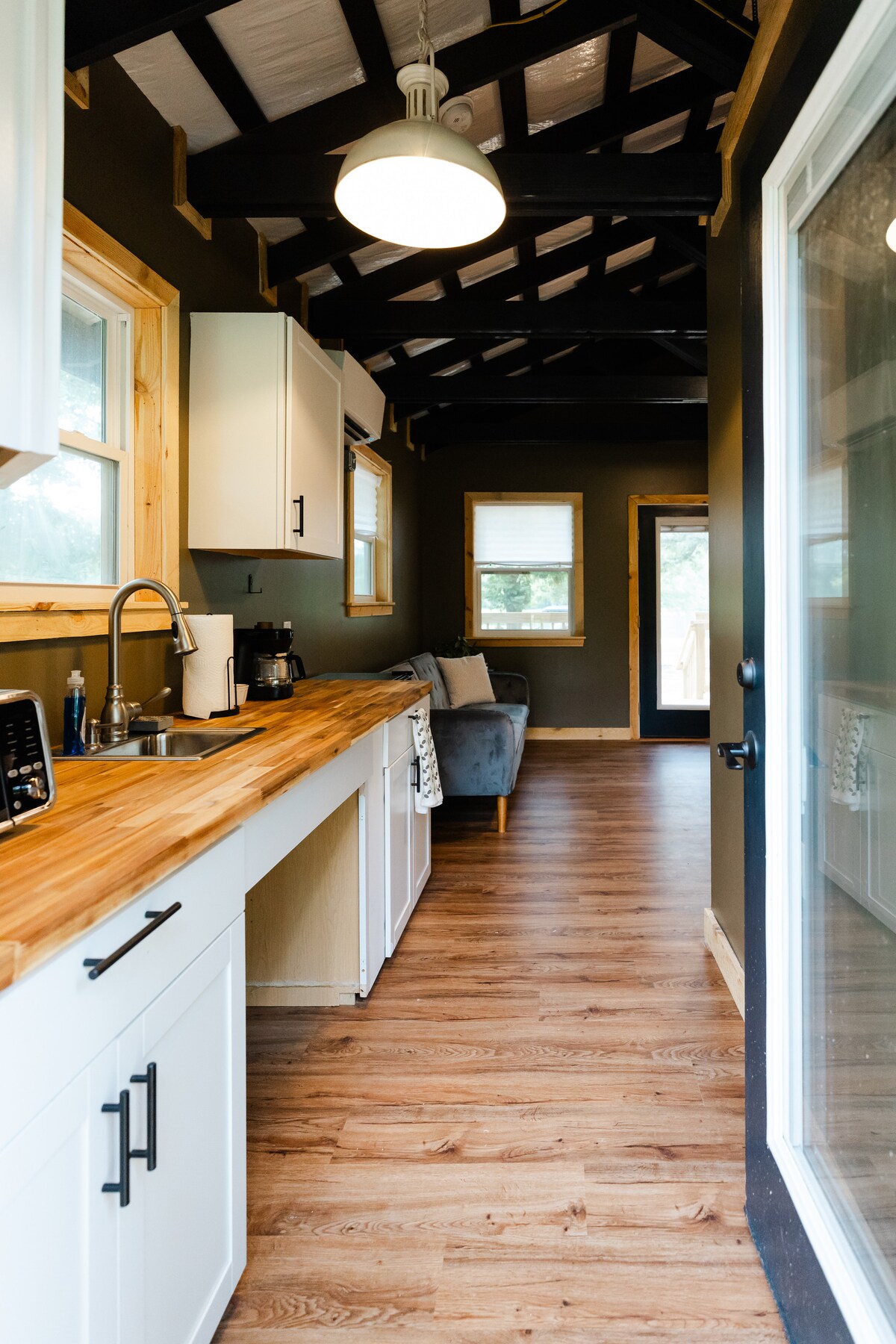 Nestled in the Uwharrie National Forest, “Star Buck Cabin” is a serene getaway that pairs outdoor adventure with cozy rustic comfort. Take in beautiful seasonal views of the farm while staying just 15 minutes from the North Carolina Zoo and Seagrove, famed for its pottery. After exploring, unwind in the hot tub, relax on the patio swing, or gather by the fire pit. Inside, enjoy your favorite TV show, relax by the fireplace, or even cook! Perfect for both adventure and relaxation.