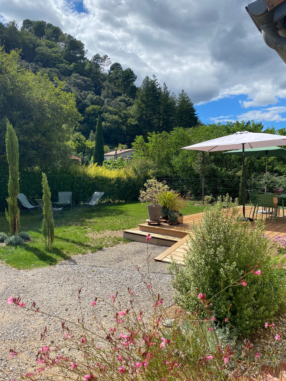 В Южном Ардеше, недалеко от достопримечательностей региона:это очаровательное жилье на высотах деревни находится в 5 минутах ходьбы от термального центра до большого парка до казино, до кинотеатра, до муниципального бассейна, ресторанов... Эта независимая студия расположена рядом с домом. Он оборудован душевой комнатой, кухней, Wi-Fi и телевизором. У вас будет доступ к большой частной террасе, загоранию, барбекю и столу. Доступ по лестнице.
