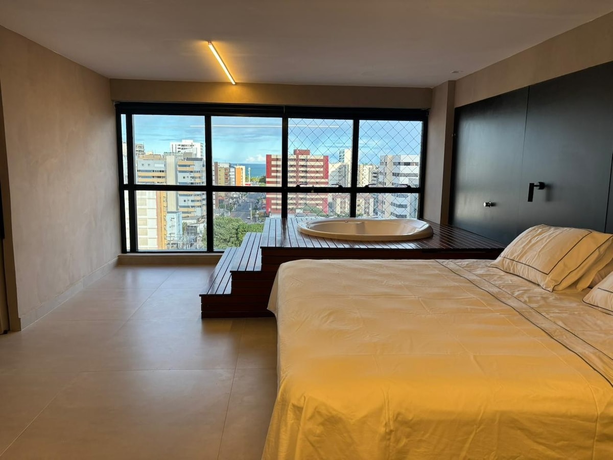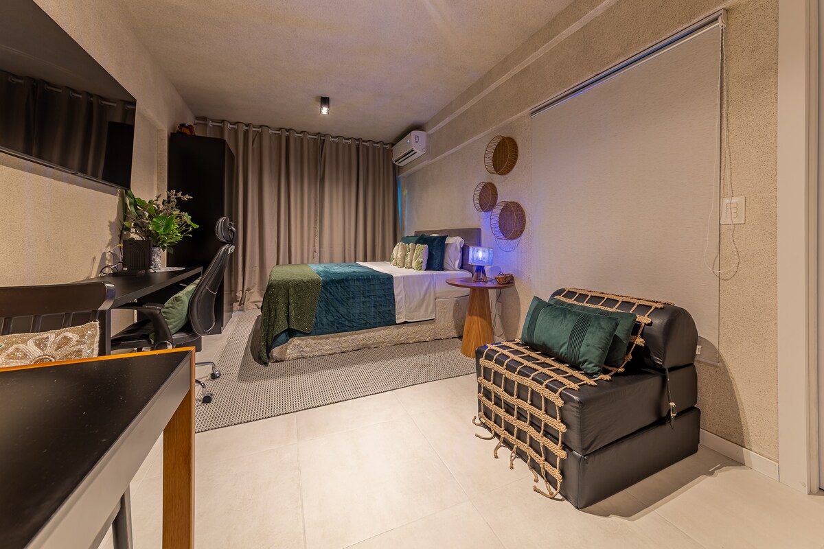 Позвольте себе насладиться уникальными моментами в этой прибрежной студии с восхитительным видом! Пляж, солнце, бассейн, тренажерный зал, мини-маркет, 10 минут ходьбы до торгового центра Parque Shopping, здесь есть все для идеального отдыха!