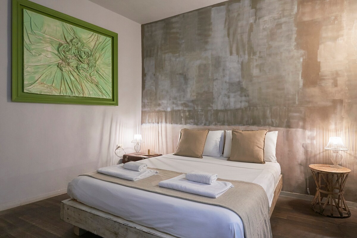 В самом сердце Флоренции, комната 2 с ванной предлагает уединенную и расслабляющую атмосферу. Современный дизайн сочетается с натуральными материалами, ухоженными растениями и железными деталями, создавая гармоничную обстановку. Двуспальная кровать (190 см x 160 см) с чистыми хлопковыми простынями гарантирует качественный отдых, а собственная ванная комната с тропическим душем и ванной приглашает к оздоровлению. Органический завтрак включен, подается в зимнем саду.