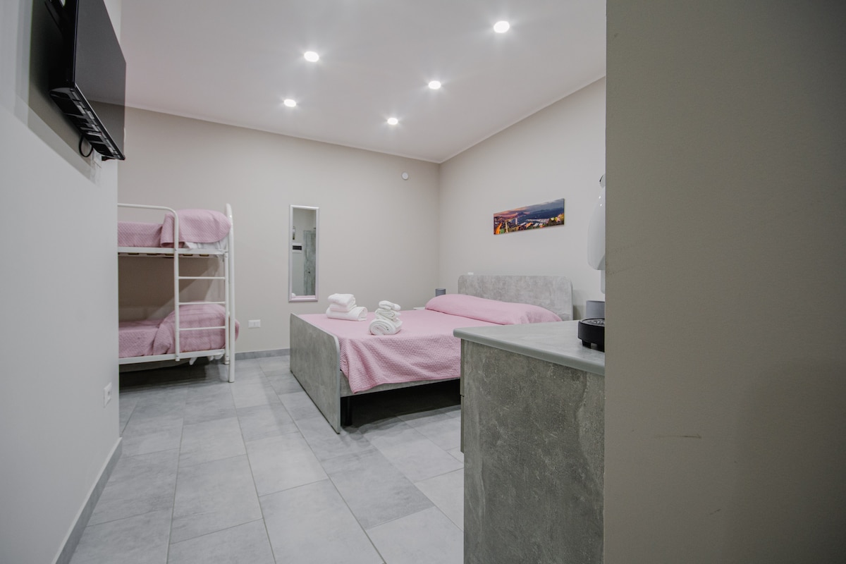City lite Pompeii - это прекрасный B&B в нескольких шагах от руин Помпеи и святилища благословенной Богородицы Помпеи. У гостя будет гостиная и спальная зона в эксклюзивном пользовании, а также отдельный балкон. Включена микроволновая печь, чайник и средство для ванной. В апартаментах два: солнце и луна. По прибытии наши гости найдут типичное печенье и сувенир.