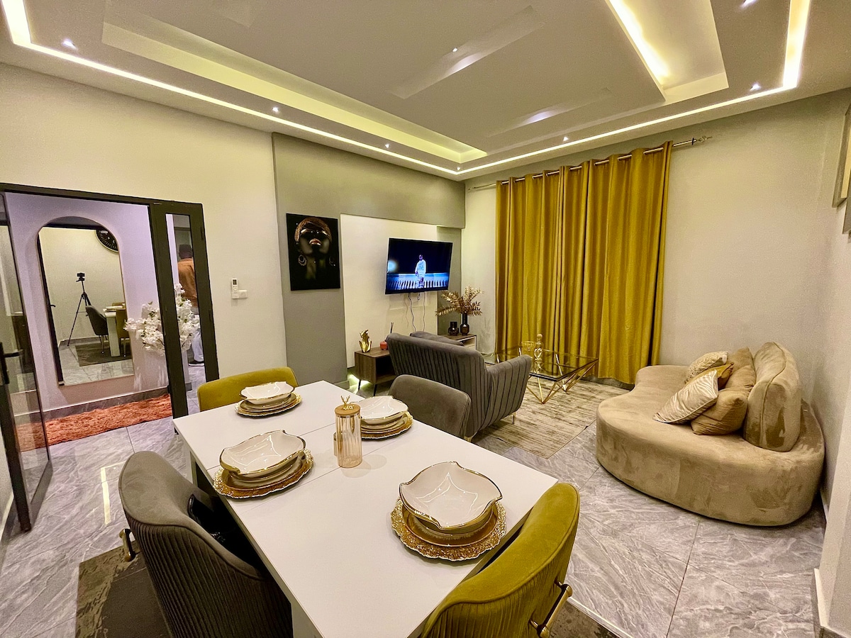 • Потрясающая полностью меблированная квартира с двумя спальнями, гостиной, мини-кухней, ванной комнатой и современными туалетами. • К услугам гостей большой 55-дюймовый QLED-экран с Netflix и Wi-Fi. • Дневная и ночная охрана, круглосуточная уборка, охраняемая системой охранной сигнализации и электрическим забором, а также камерами видеонаблюдения. • Электронный генератор на случай отключения электроэнергии, партии воды и частная парковка.