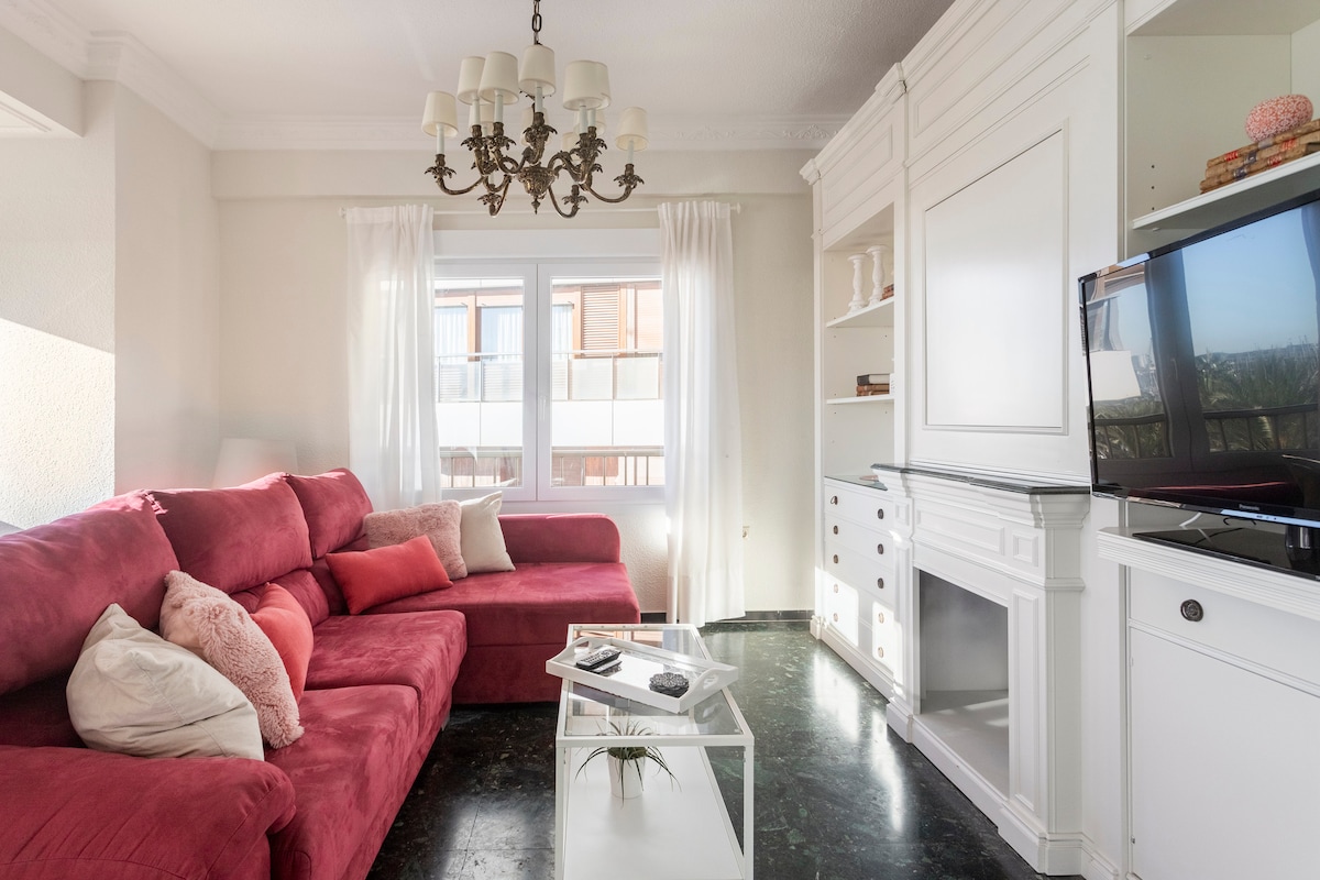 This cozy ground floor apartment is located just 5 mins from Renfe train station, 10 mins to City Center and 20 mins to the Postiguet beach (city beach). Completely renovated in 2017 with open kitchen, new appliances, 43 inch smart TV. Big salon area, private patio, kitchen equipped with stove, microwave and oven, AC in the bedroom (heating/cooling). A double bed in the bedroom, 2 single beds in the salon and possible to add an extra bed for the 5th guest.