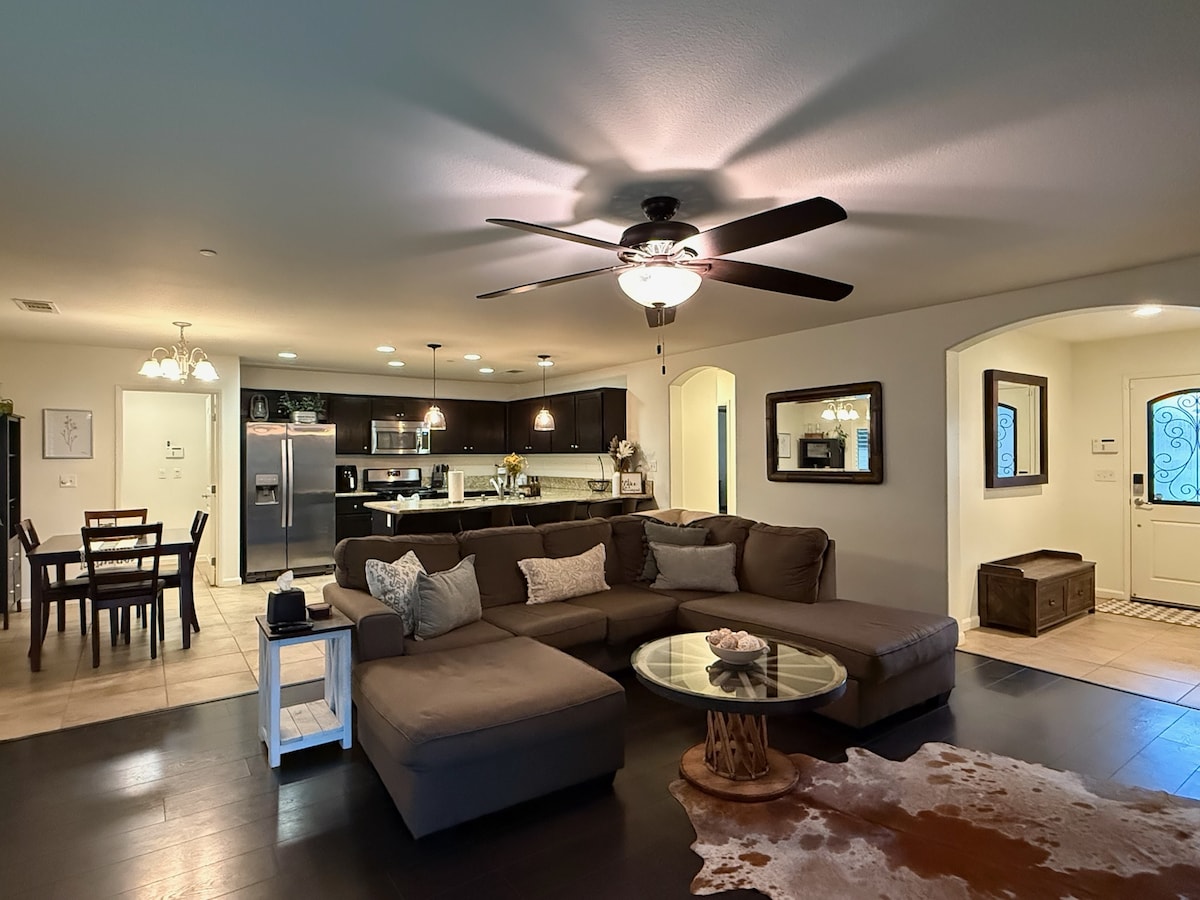 Просторный дом площадью 2000 кв. футов 3BD 2.5BA 2LivingRoom расположен на тихом районе Кал-де-Сак. Полностью отремонтирован с новой краской, новым полом, новыми ванными комнатами, новым постельным бельем и т. д. Умные телевизоры, бесплатный Wi-Fi, стриминг, оборудованная кухня, барбекю, настольный теннис, футбол, кукурузная нора, рабочие столы. Комфортное размещение 10-15 человек: 2 кровати размера Queen size, 2 односпальные кровати, 2 односпальные кровати размера Queen size, 2 надувных матраса размера Queen size. Жилье расположено в центре Портервилла, менее чем в 1 миле от продуктовых магазинов, магазинов и ресторанов. Национальный парк Секвойя находится в 30 минутах езды.