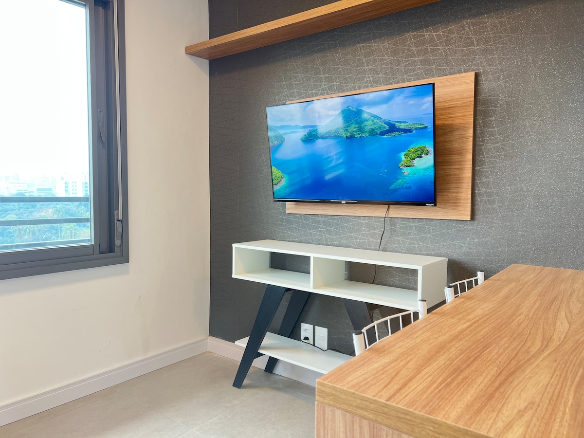 ✨ У вас будет комфорт на 16-м этаже в этом лофте с Alexa Automation, SmartTV, электрическим камином, оборудованной Ar-Split и кухней, газовым душем, кроватью Simmons (самая удобная в мире) и бесплатным гаражом! Здесь вы можете найти: • Крыша с панорамным видом • Барбекю • Бассейн 25 м • Академия • Коворкинг • Круглосуточный шлюз • Прачечная • Лифт, гараж Проксимидады: • продуктовые магазины; • Аэропорт ⟶ 25 мин (на машине). • PUC⟶ 4 минуты (пешком). • Центр, консульство⟶ 15 минут (на машине).