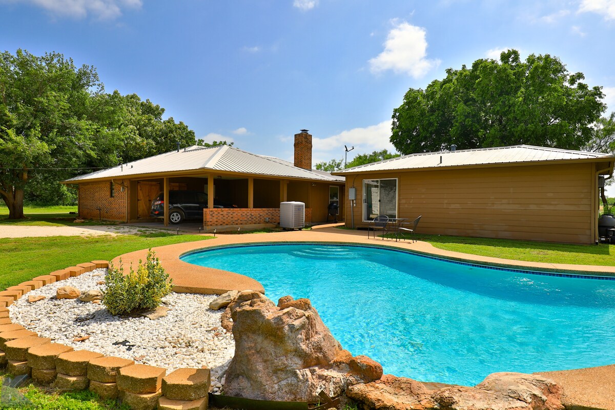 The "Cottage" is a one-bedroom, one-bathroom guest house with a full kitchen that overlooks the backyard pool. The cottage (along with the main house-that is next door) is situated on 40 acres outside the city limits of Abilene, Texas (Potosi.) When you arrive, you may see horses grazing out in the pasture, two loving Collies & the farm cat "Major." We hope that our guests enjoy the peaceful country all while being minutes away from entertainment, restaurants, airport & hospitals.