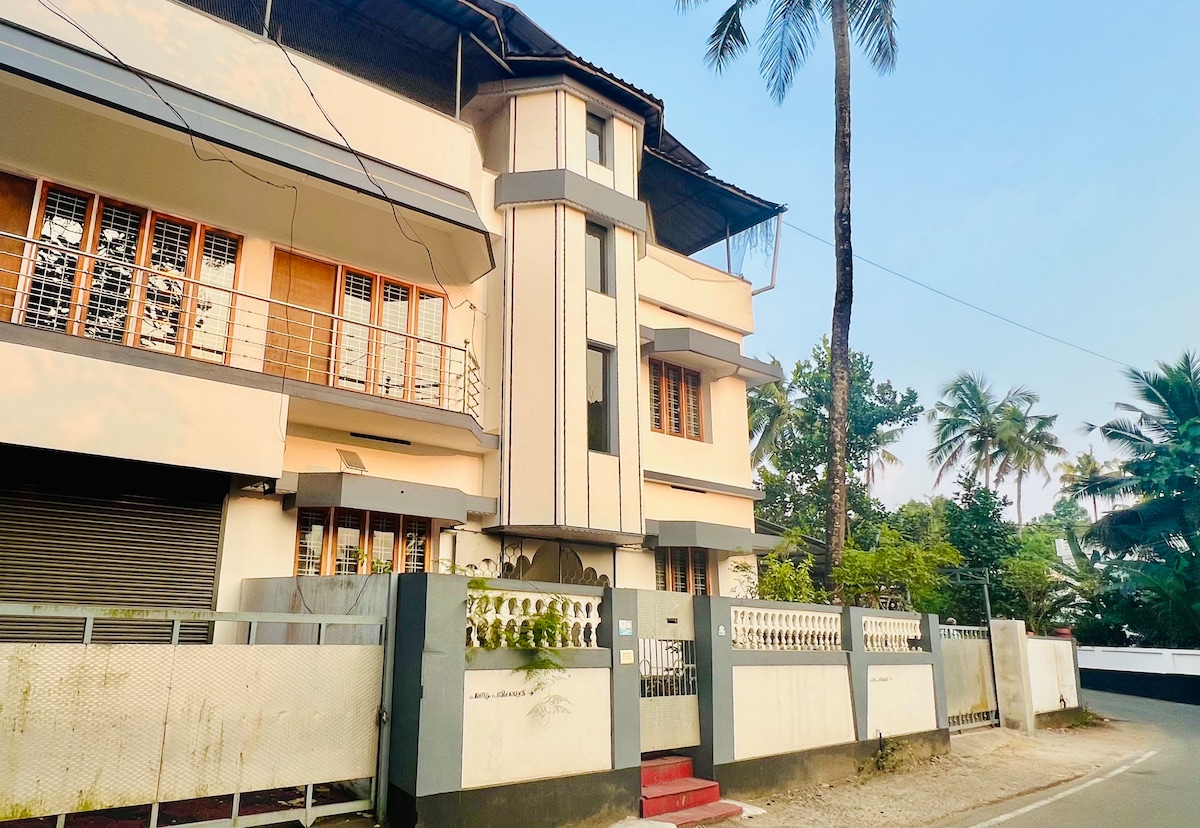 Дом расположен ровно напротив КАМКО,Мала. Жилье расположено в спокойной обстановке, всего в 8 км от храма Кодунгалур-Бхагавати. Это свежий 2-этажный дом с 2 спальнями и всеми основными удобствами, такими как холодильник,детская кроватка с матрасом в обеих спальнях,телевизор,стиральная машина и несколько диванов. Гейзер обеспечивает горячую воду в ванных комнатах. Дом идеально подходит для путешественников, ищущих тихое место вдали от городской суеты. Изюминкой дома является вид на набережную с промежуточного этажа.
