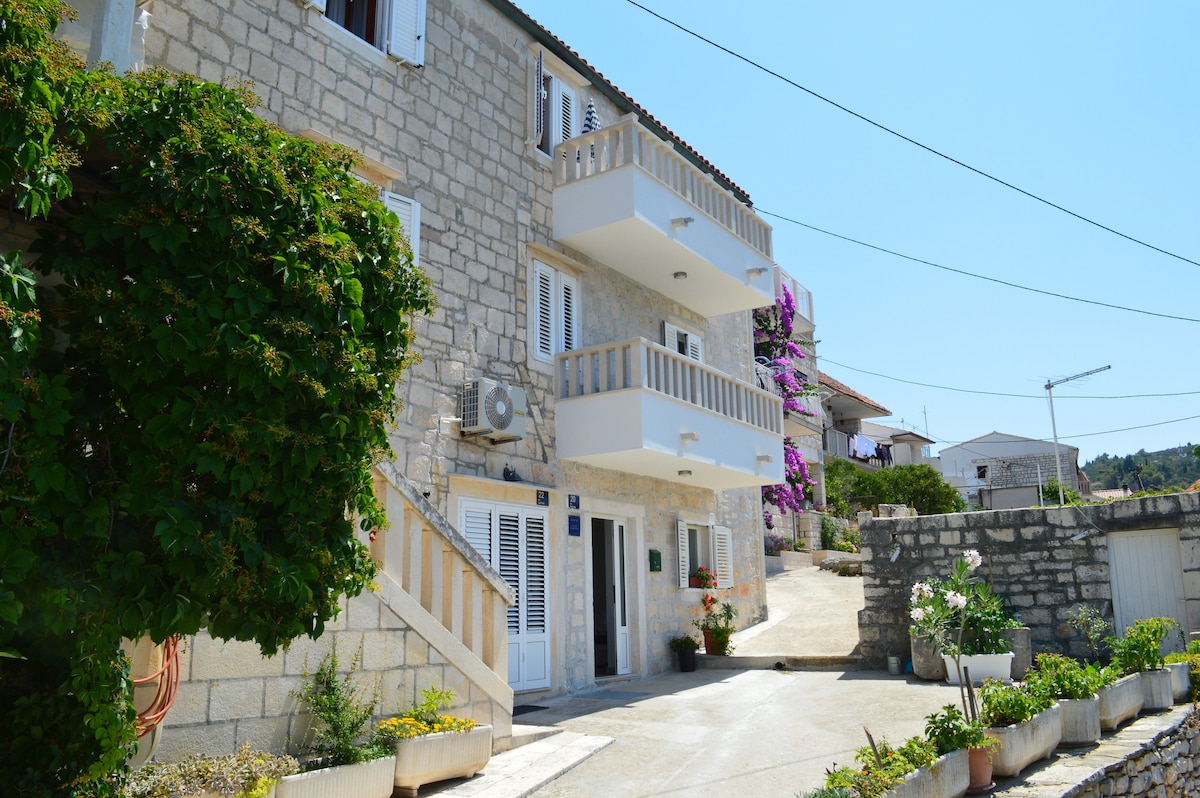 Прямо в центре рыбацкой деревни "Povjla" на хорватском острове Брац находится квартира отдыха "Nada". Апартаменты в доме были закончены в 2019 году и все современные и ярко меблированные. Сам дом расположен в центре исторического центра деревни. Всего в нескольких шагах вы находитесь прямо в порту и в центре деревни. Общественные пляжи для купания находятся в нескольких минутах ходьбы.