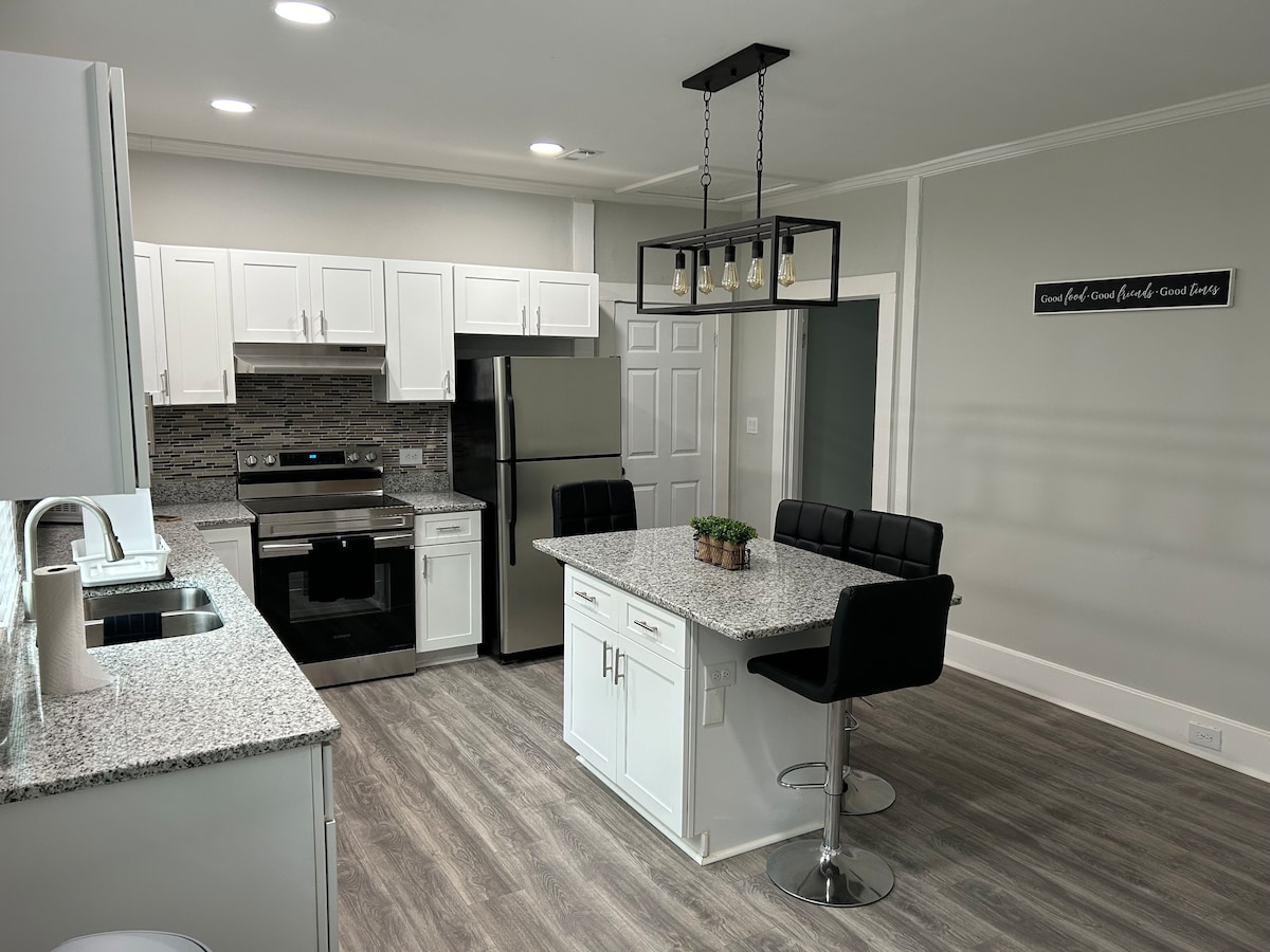 Красиво отремонтированная и просторная отдельная квартира на цокольном этаже с 1 кроватью/1 ванной комнатой и отдельным входом! В квартире есть кухонная техника из нержавеющей стали, Wi-Fi, отдельное рабочее место, два телевизора с плоским экраном и Fire TV, стиральная машина и сушилка, а также электрический камин. Жилье расположено в тихом жилом районе, но всего в 5 милях от исторической площади Мариетты и в 5 милях от стадиона Braves. Наслаждайтесь тишиной и покоем, находясь рядом с азартом метро Атланты!