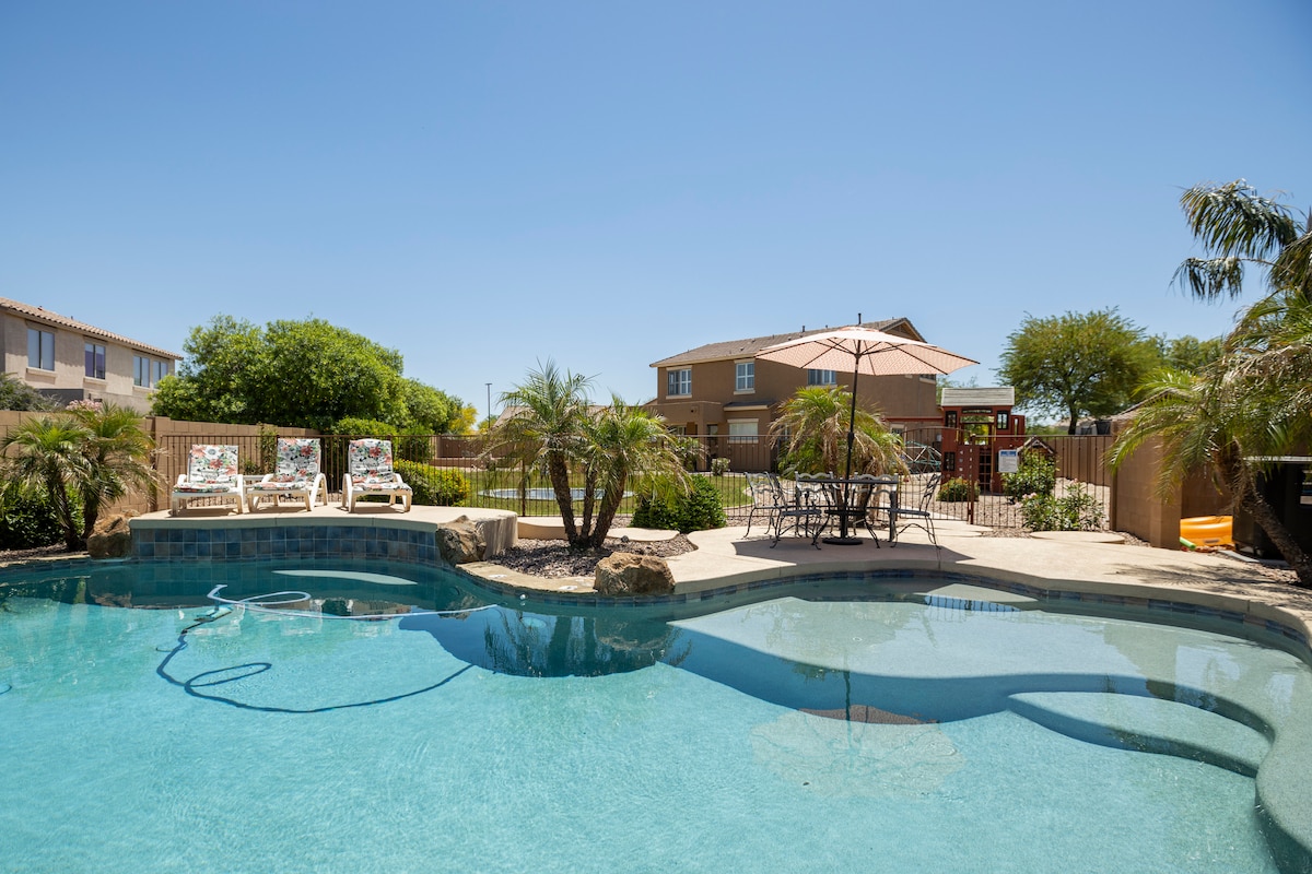 Этот дом с 5 спальнями предназначен для того, чтобы вы могли насладиться погодой в Аризоне. Снаружи вы найдете оазис бассейна с подогревом, тренажерный зал в джунглях, качели и наземный батут. Ночью вы можете собраться у костра или устроить отличное семейное барбекю. Внутри вас ждет больше удовольствия с бильярдным столом, газовым камином, книгами и играми. Во всех 5 спальнях есть двуспальные кровати размера King size и телевизоры. Внизу есть одна спальня с туалетом и ванная комната для легкого доступа.